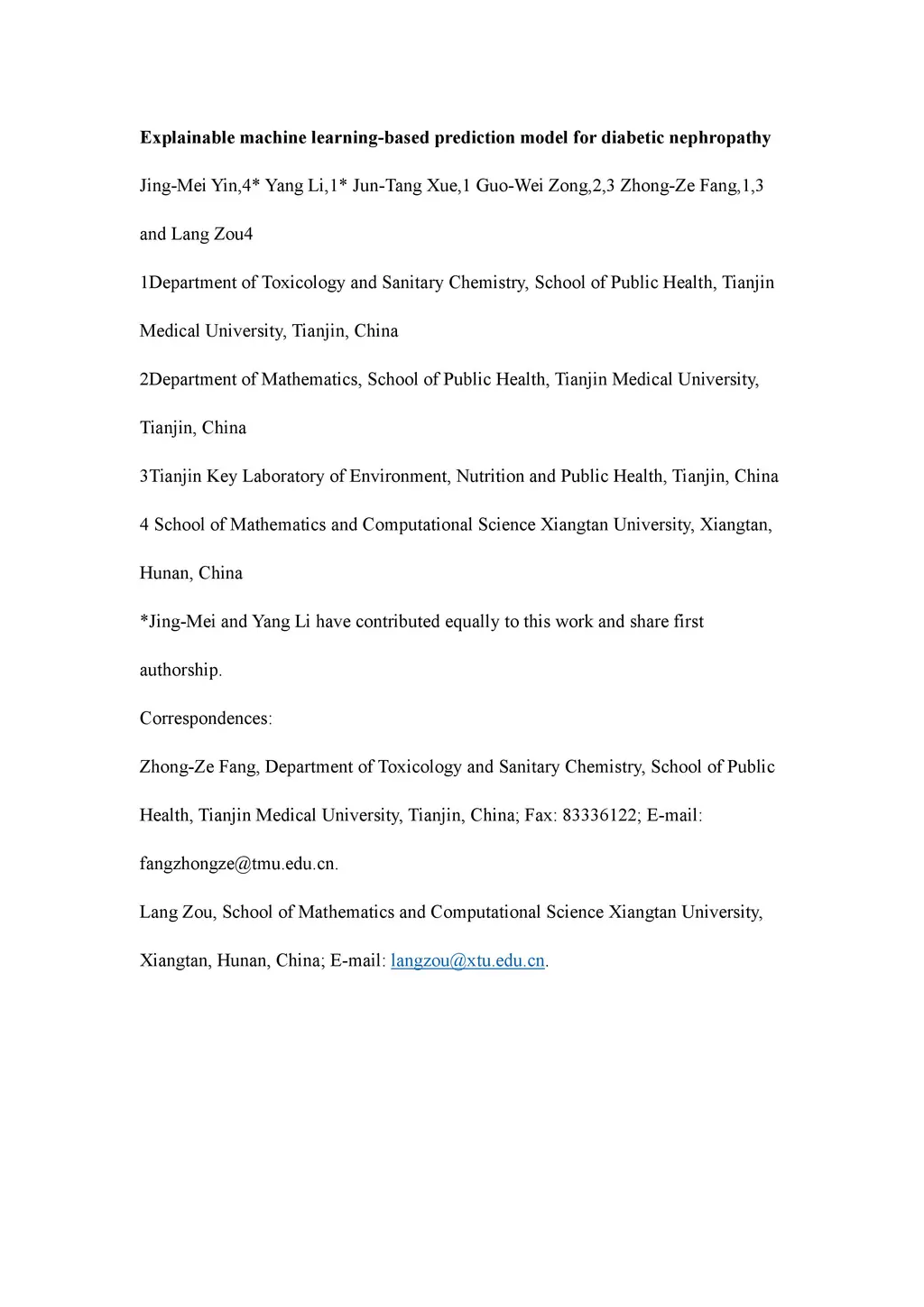 Explainable machine learning-based prediction model for diabetic nephropathy