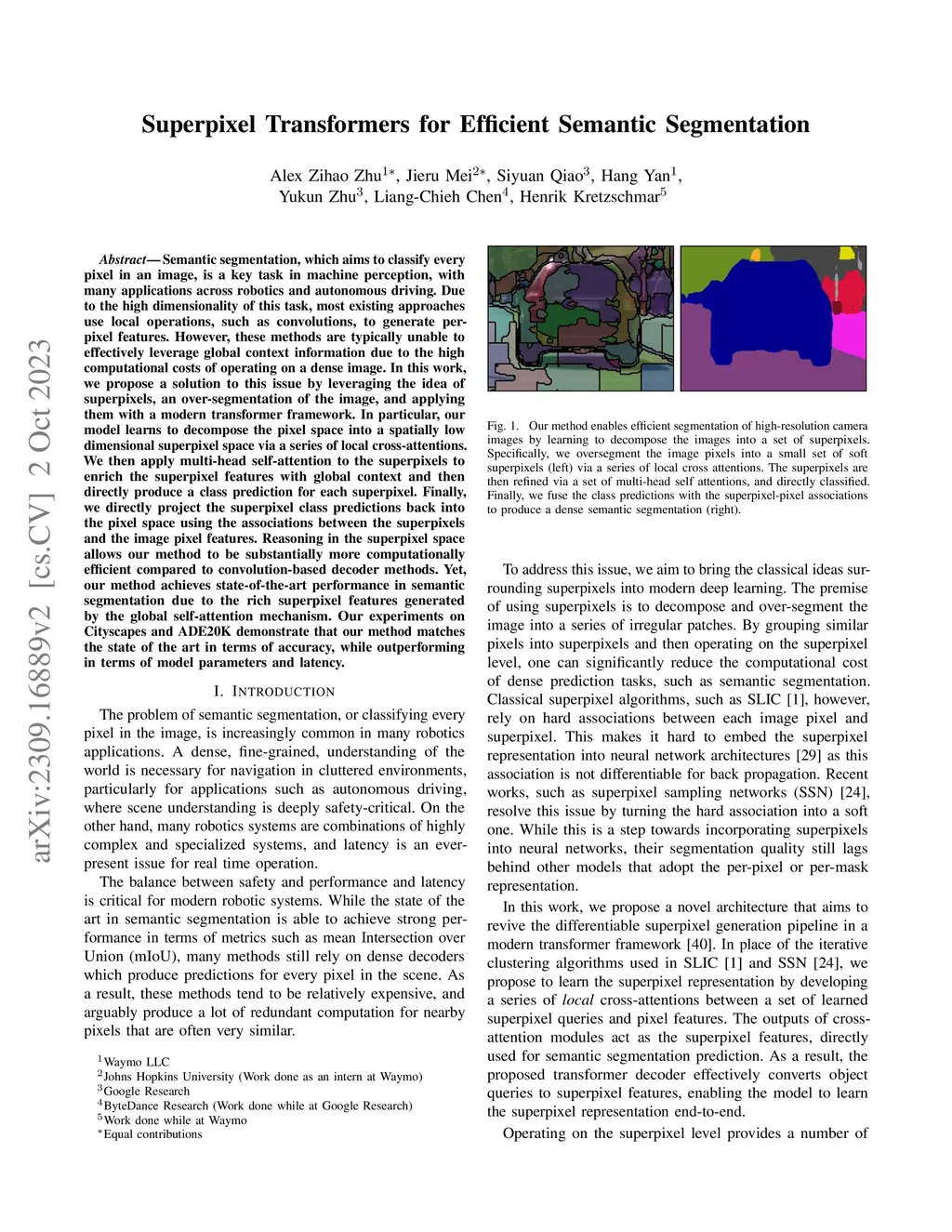 Superpixel Transformers for Efficient Semantic Segmentation