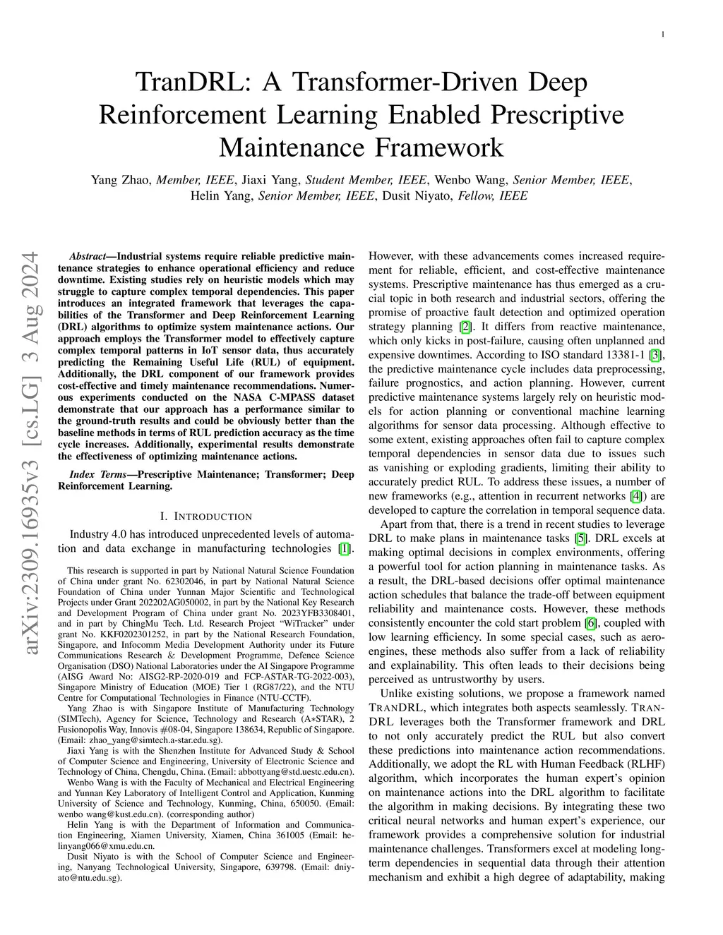 Industrial systems demand reliable predictive maintenance strategies to enhance operational efficiency and reduce downtime. This paper introduces an integrated framework that leverages the capabilities of the Transformer model-based neural networks and deep reinforcement learning (DRL) algorithms to optimize system maintenance actions. Our approach employs the Transformer model to effectively capture complex temporal patterns in sensor data, thereby accurately predicting the remaining useful life (RUL) of an equipment. Additionally, the DRL component of our framework provides cost-effective and timely maintenance recommendations. We validate the efficacy of our framework on the NASA C-MPASS dataset, where it demonstrates significant advancements in both RUL prediction accuracy and the optimization of maintenance actions, compared to the other prevalent machine learning-based methods. Our proposed approach provides an innovative data-driven framework for industry machine systems, accurately forecasting equipment lifespans and optimizing maintenance schedules, thereby reducing downtime and cutting costs.