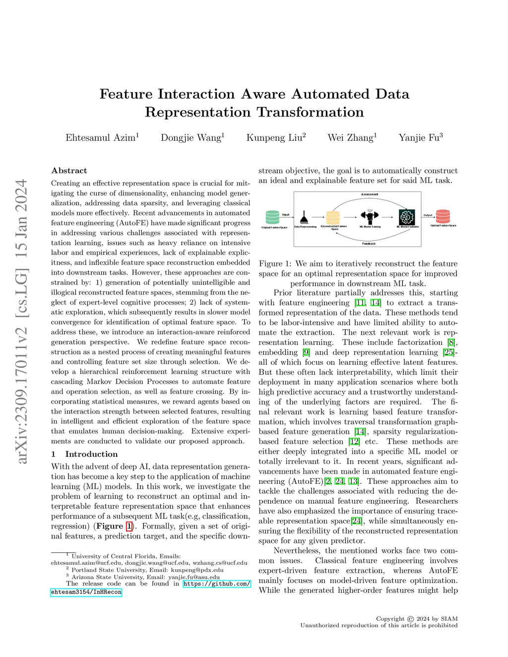 Creating an effective representation space is crucial for mitigating the curse of dimensionality, enhancing model generalization, addressing data sparsity, and leveraging classical models more effectively. Recent advancements in automated feature engineering (AutoFE) have made significant progress in addressing various challenges associated with representation learning, issues such as heavy reliance on intensive labor and empirical experiences, lack of explainable explicitness, and inflexible feature space reconstruction embedded into downstream tasks. However, these approaches are constrained by: 1) generation of potentially unintelligible and illogical reconstructed feature spaces, stemming from the neglect of expert-level cognitive processes; 2) lack of systematic exploration, which subsequently results in slower model convergence for identification of optimal feature space. To address these, we introduce an interaction-aware reinforced generation perspective. We redefine feature space reconstruction as a nested process of creating meaningful features and controlling feature set size through selection. We develop a hierarchical reinforcement learning structure with cascading Markov Decision Processes to automate feature and operation selection, as well as feature crossing. By incorporating statistical measures, we reward agents based on the interaction strength between selected features, resulting in intelligent and efficient exploration of the feature space that emulates human decision-making. Extensive experiments are conducted to validate our proposed approach.