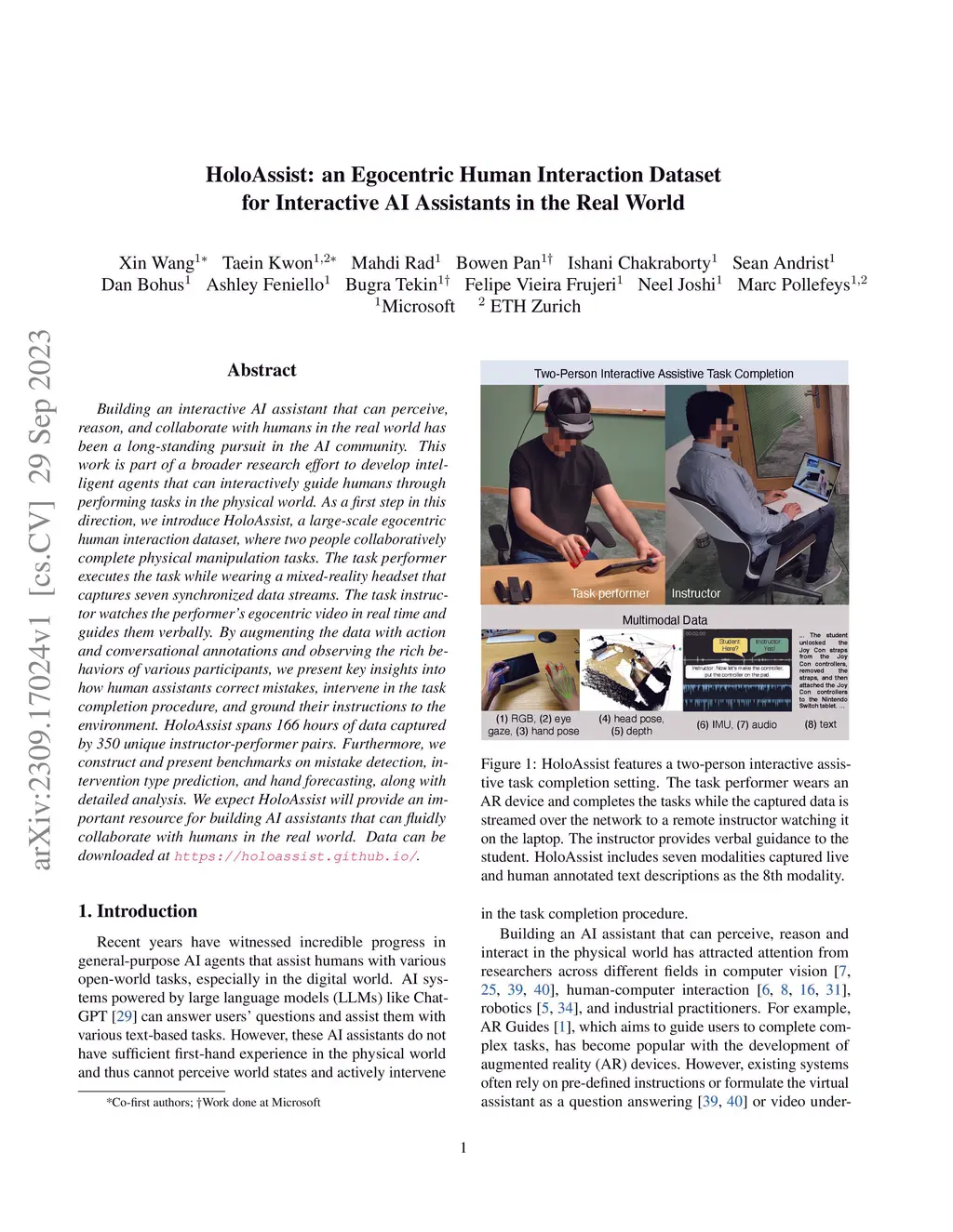 HoloAssist: an Egocentric Human Interaction Dataset for Interactive AI