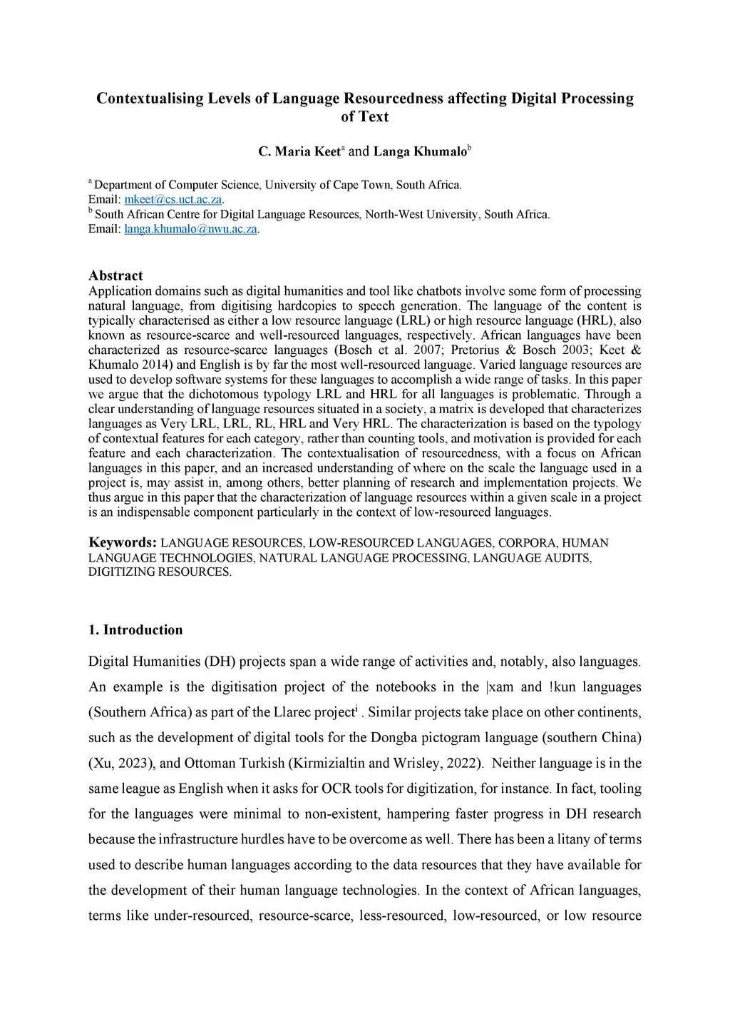 Contextualising Levels of Language Resourcedness that affect NLP tasks