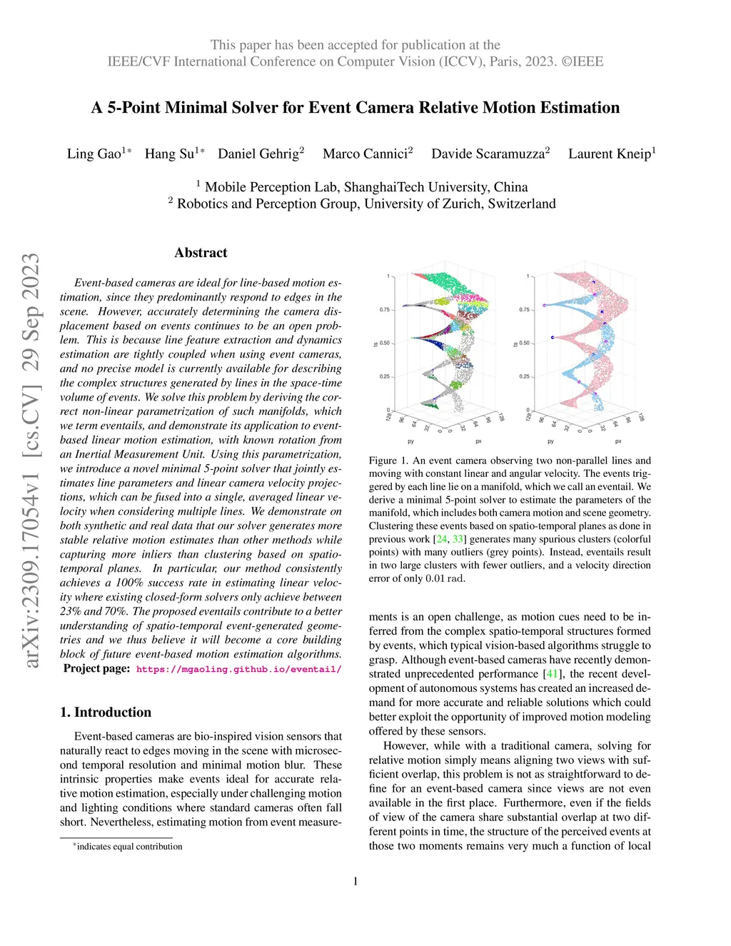 A 5-Point Minimal Solver for Event Camera Relative Motion Estimation
