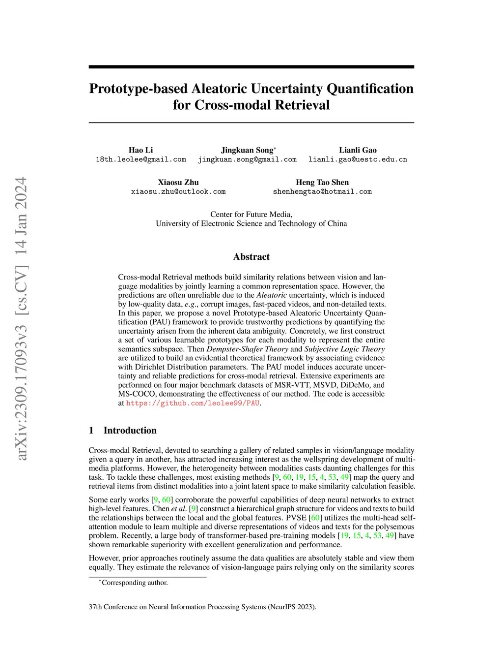 Prototype-based Aleatoric Uncertainty Quantification for Cross-modal