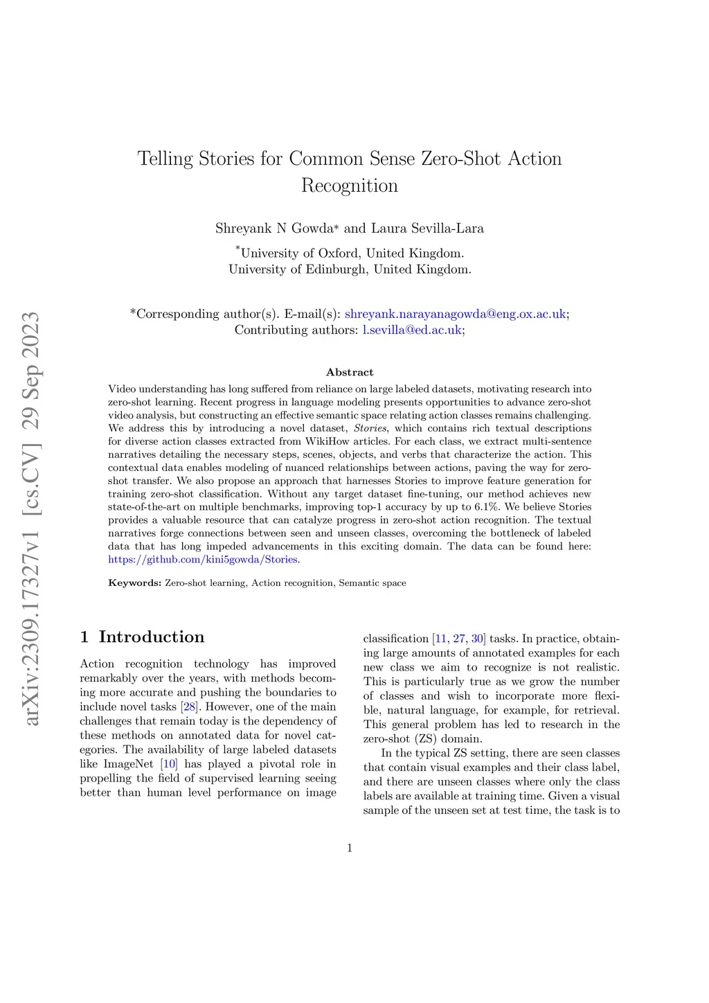 Telling Stories for Common Sense Zero-Shot Action Recognition