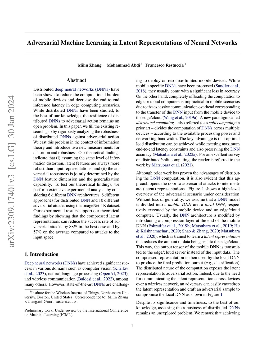 Adversarial Attacks to Latent Representations of Distributed Neural Networks in Split Computing