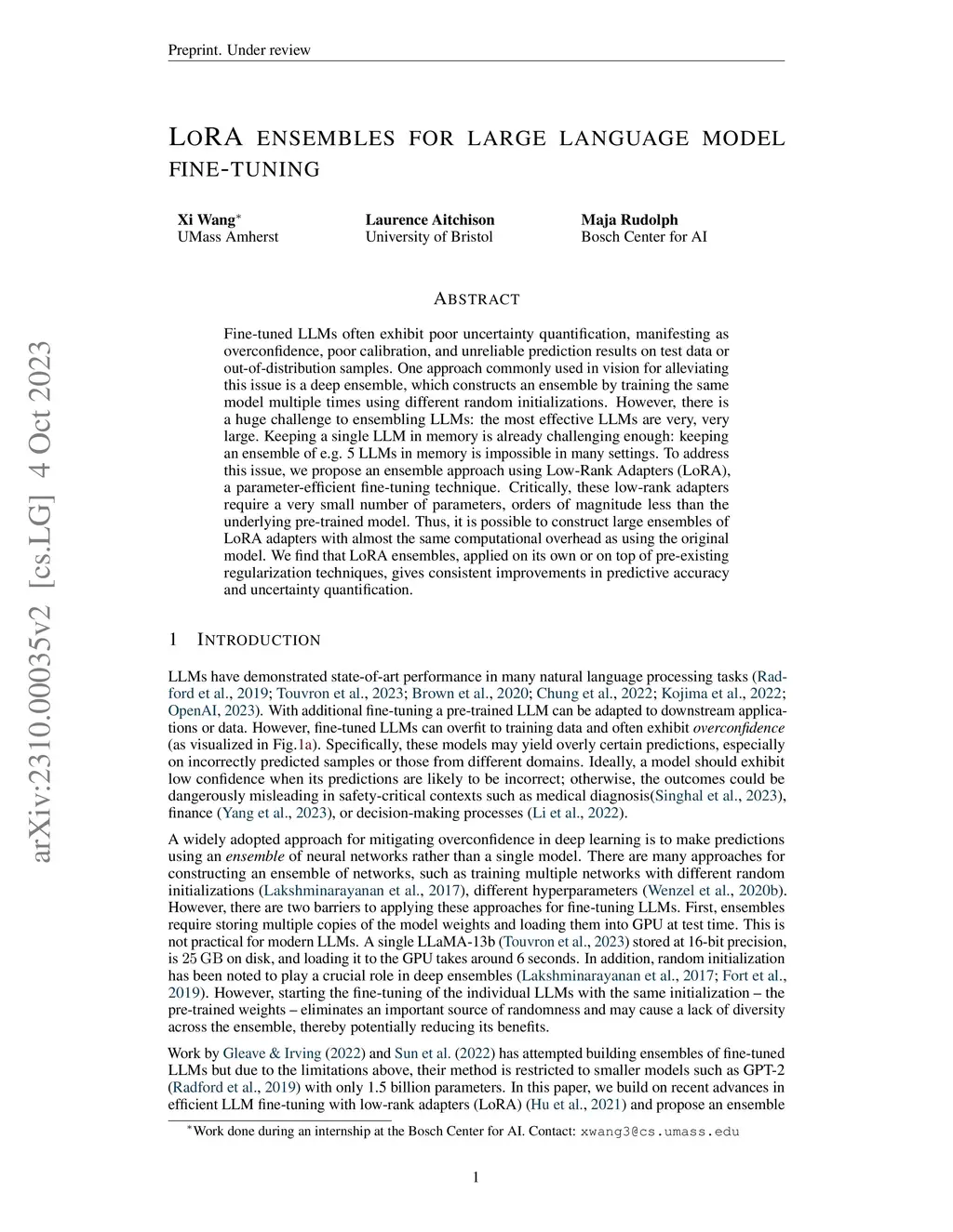 LoRA ensembles for large language model fine-tuning