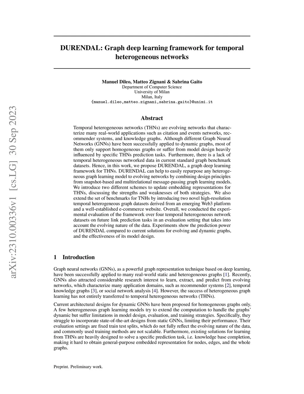 DURENDAL: Graph deep learning framework for temporal heterogeneous
