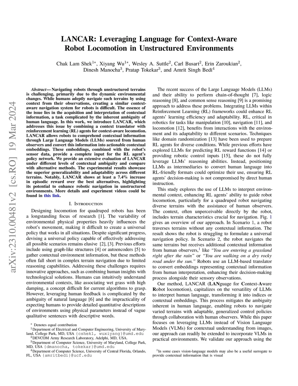 LANCAR: Leveraging Language for Context-Aware Robot Locomotion in