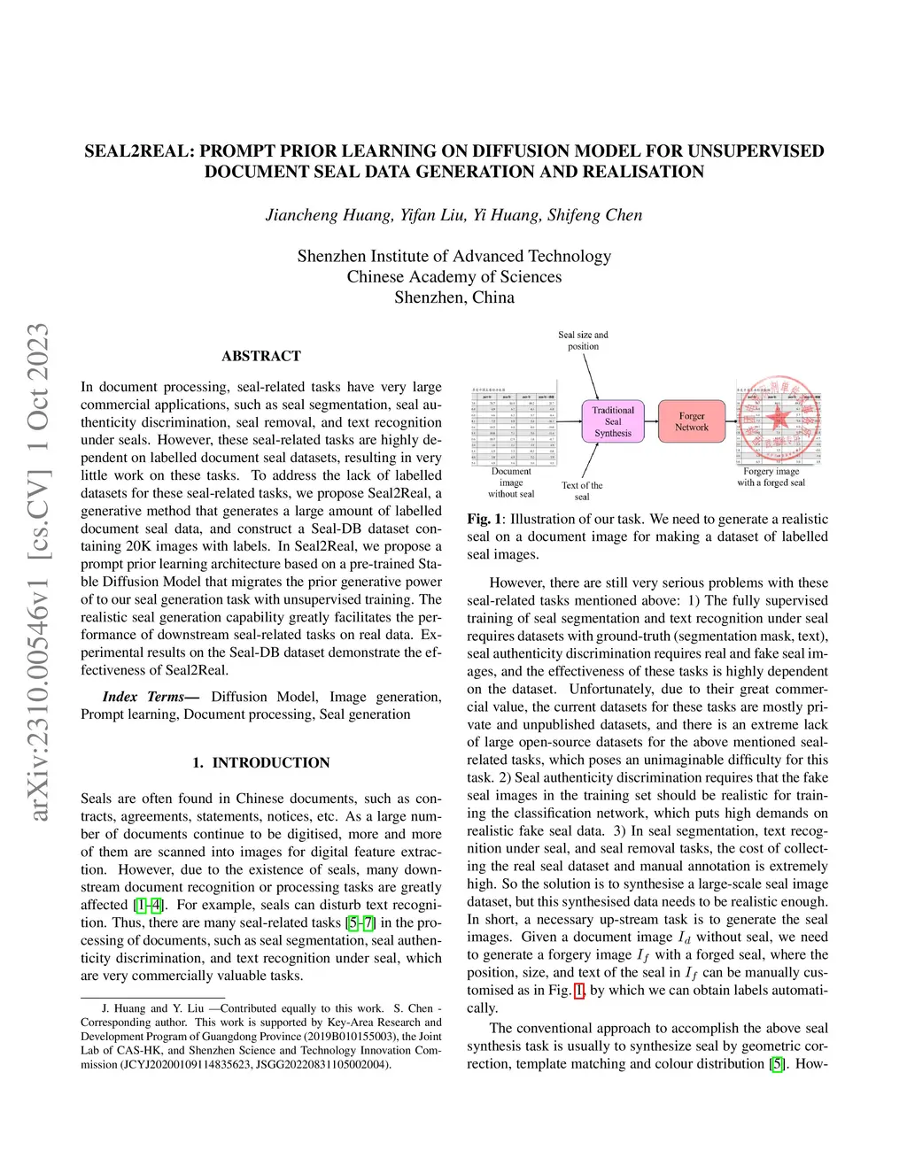 Seal-related tasks in document processing-such as seal segmentation, authenticity verification, seal removal, and text recognition under seals-hold substantial commercial importance. However, progress in these areas has been hindered by the scarcity of labeled document seal datasets, which are essential for supervised learning. To address this limitation, we propose Seal2Real, a novel generative framework designed to synthesize large-scale labeled document seal data. As part of this work, we also present Seal-DB, a comprehensive dataset containing 20,000 labeled images to support seal-related research. Seal2Real introduces a prompt prior learning architecture built upon a pre-trained Stable Diffusion model, effectively transferring its generative capability to the unsupervised domain of seal image synthesis. By producing highly realistic synthetic seal images, Seal2Real significantly enhances the performance of downstream seal-related tasks on real-world data. Experimental evaluations on the Seal-DB dataset demonstrate the effectiveness and practical value of the proposed framework. The dataset is available atthis https URL.