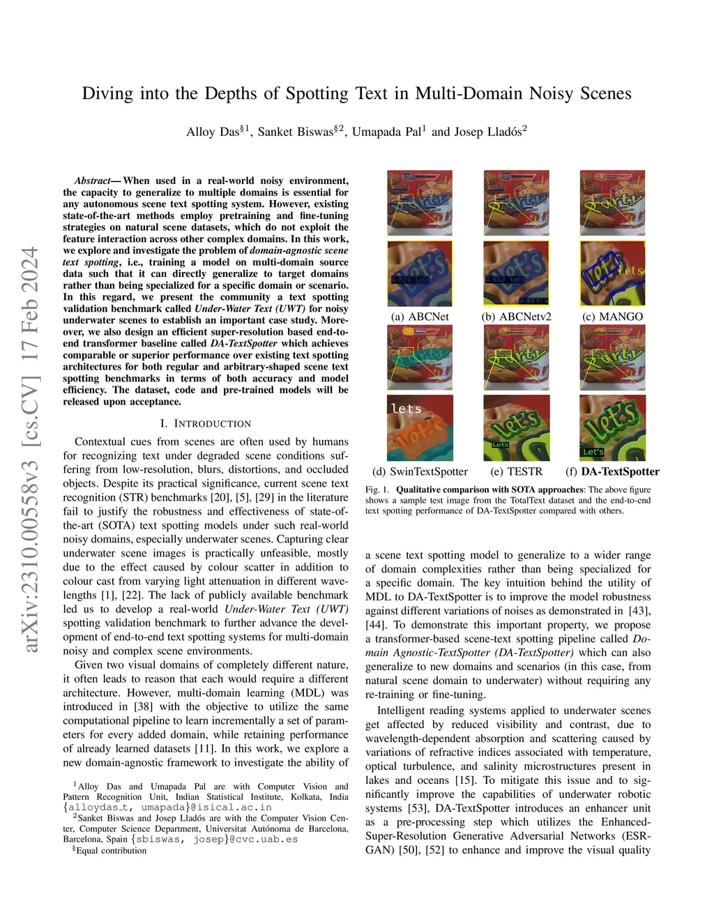Diving into the Depths of Spotting Text in Multi-Domain Noisy Scenes