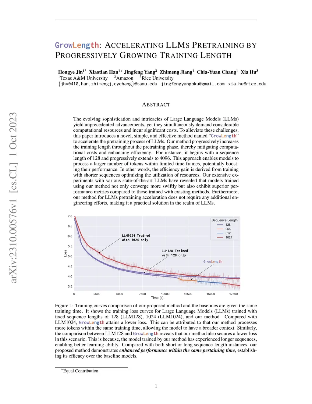 GrowLength: Accelerating LLMs Pretraining by Progressively Growing