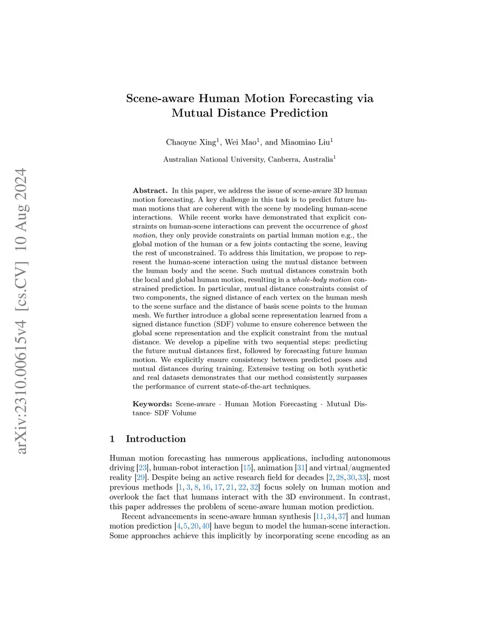 Scene-aware Human Motion Forecasting via Mutual Distance Prediction