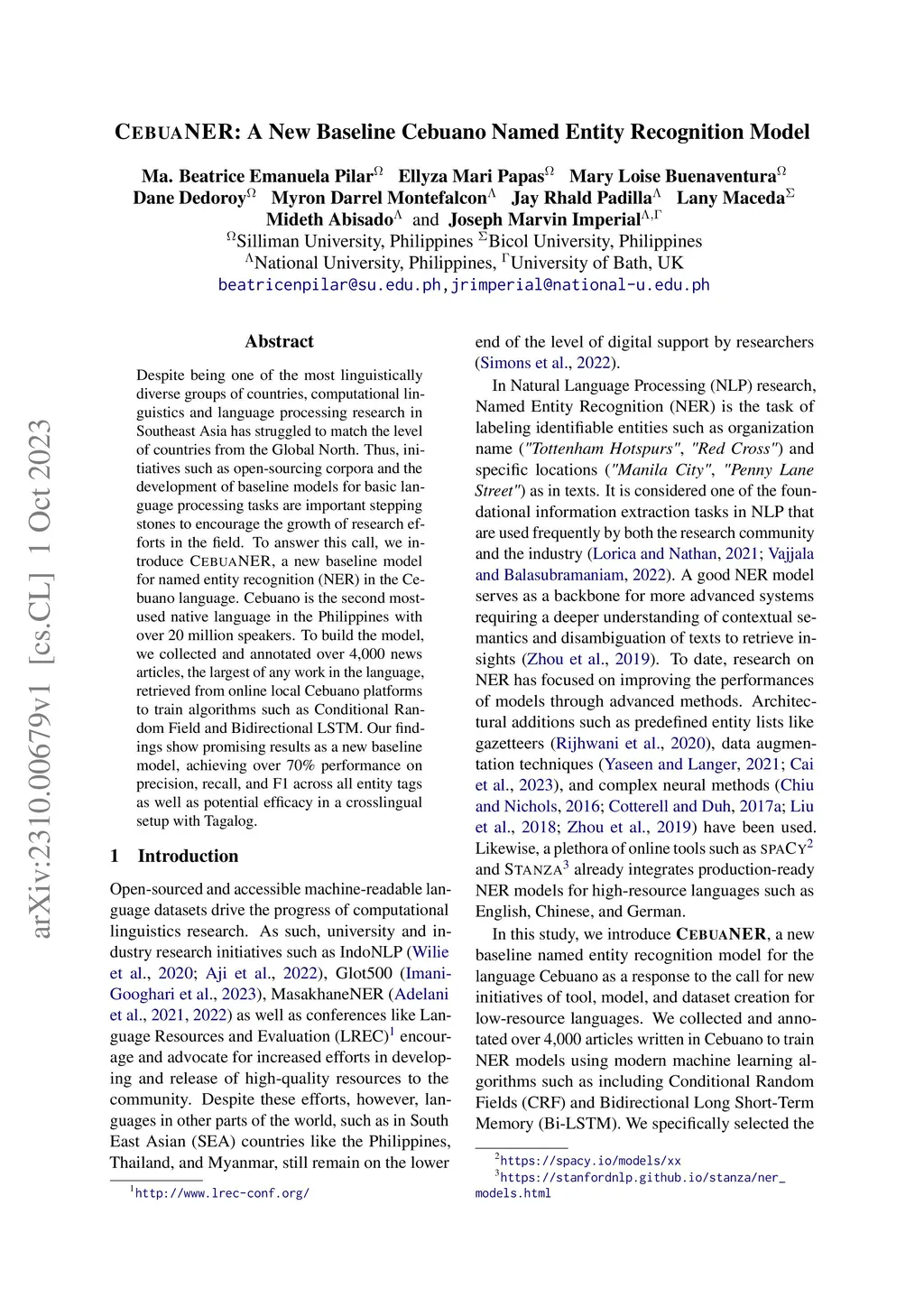 CebuaNER: A New Baseline Cebuano Named Entity Recognition Model