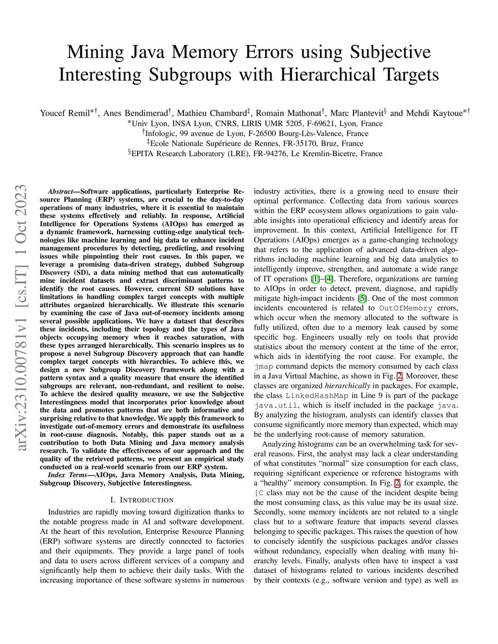 Mining Java Memory Errors using Subjective Interesting Subgroups with
