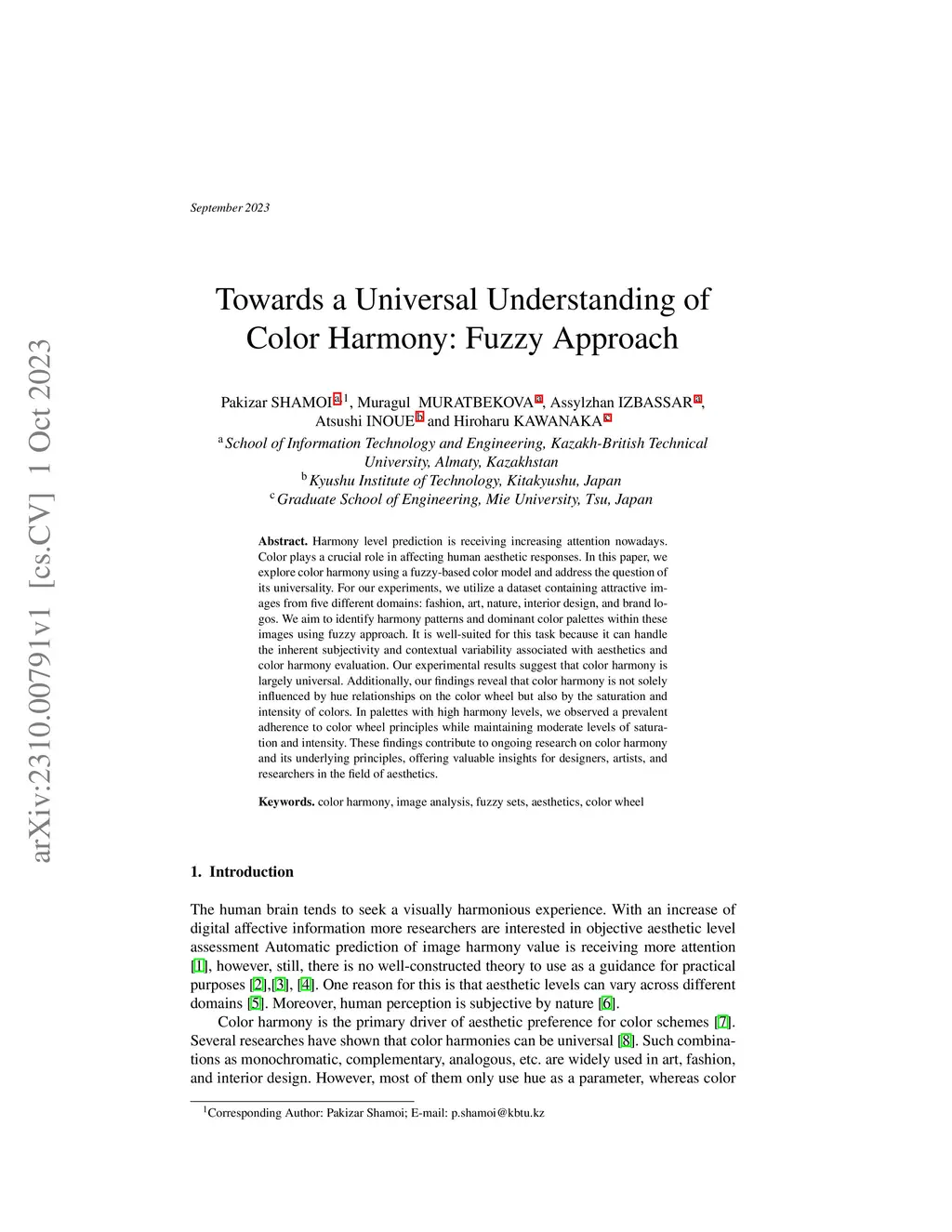 Towards a Universal Understanding of Color Harmony: Fuzzy Approach
