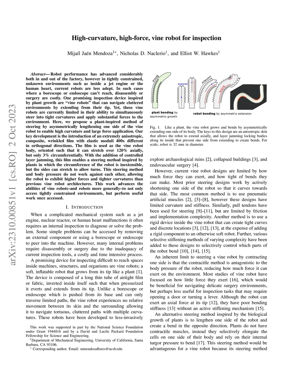 High-curvature, high-force, vine robot for inspection