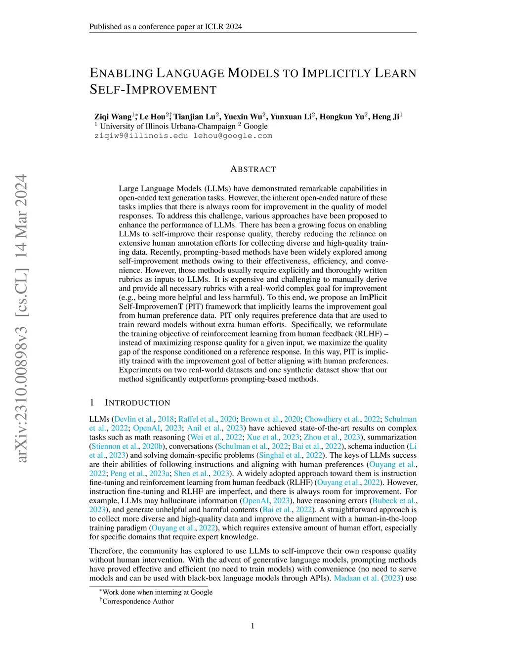 Enabling Language Models to Implicitly Learn Self-Improvement