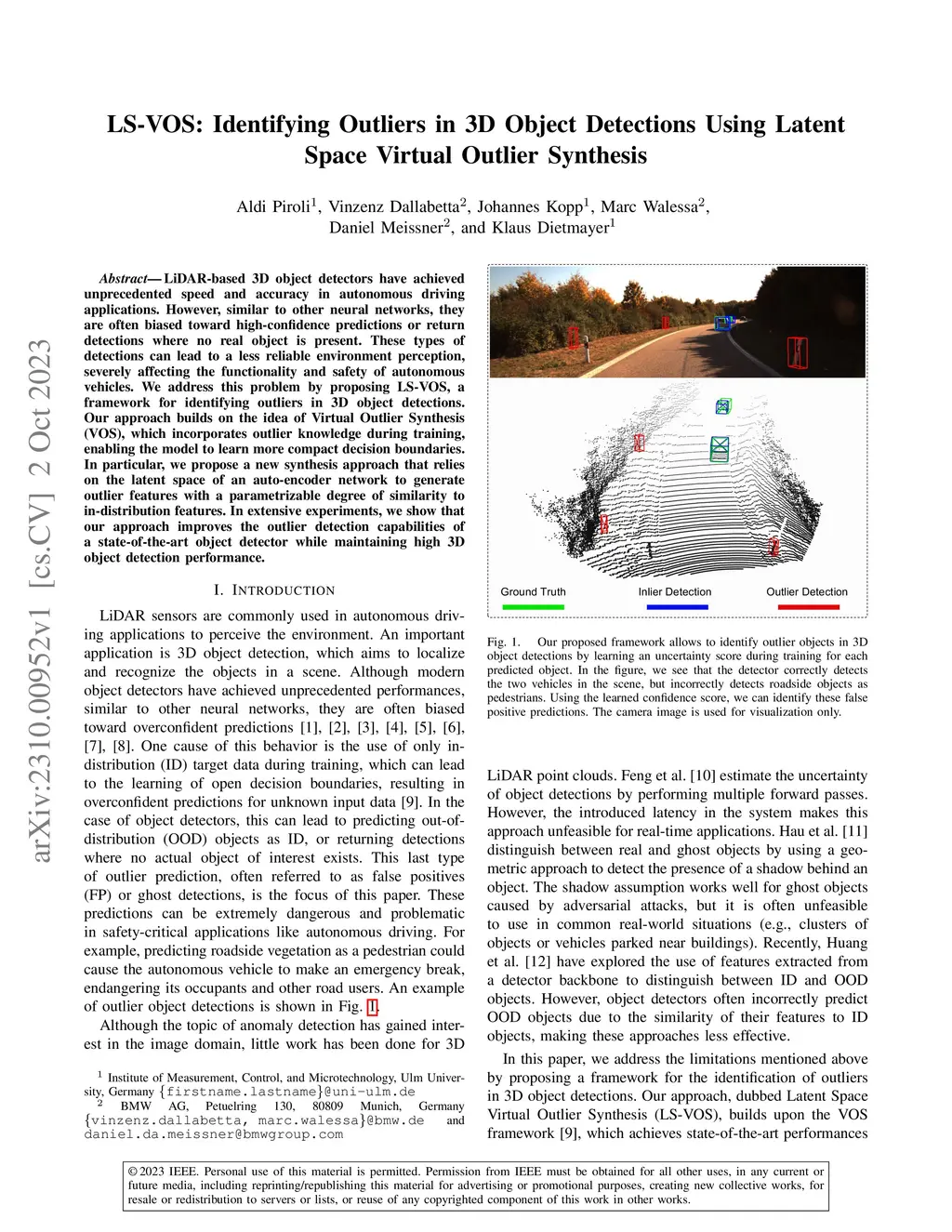 LS-VOS: Identifying Outliers in 3D Object Detections Using Latent Space