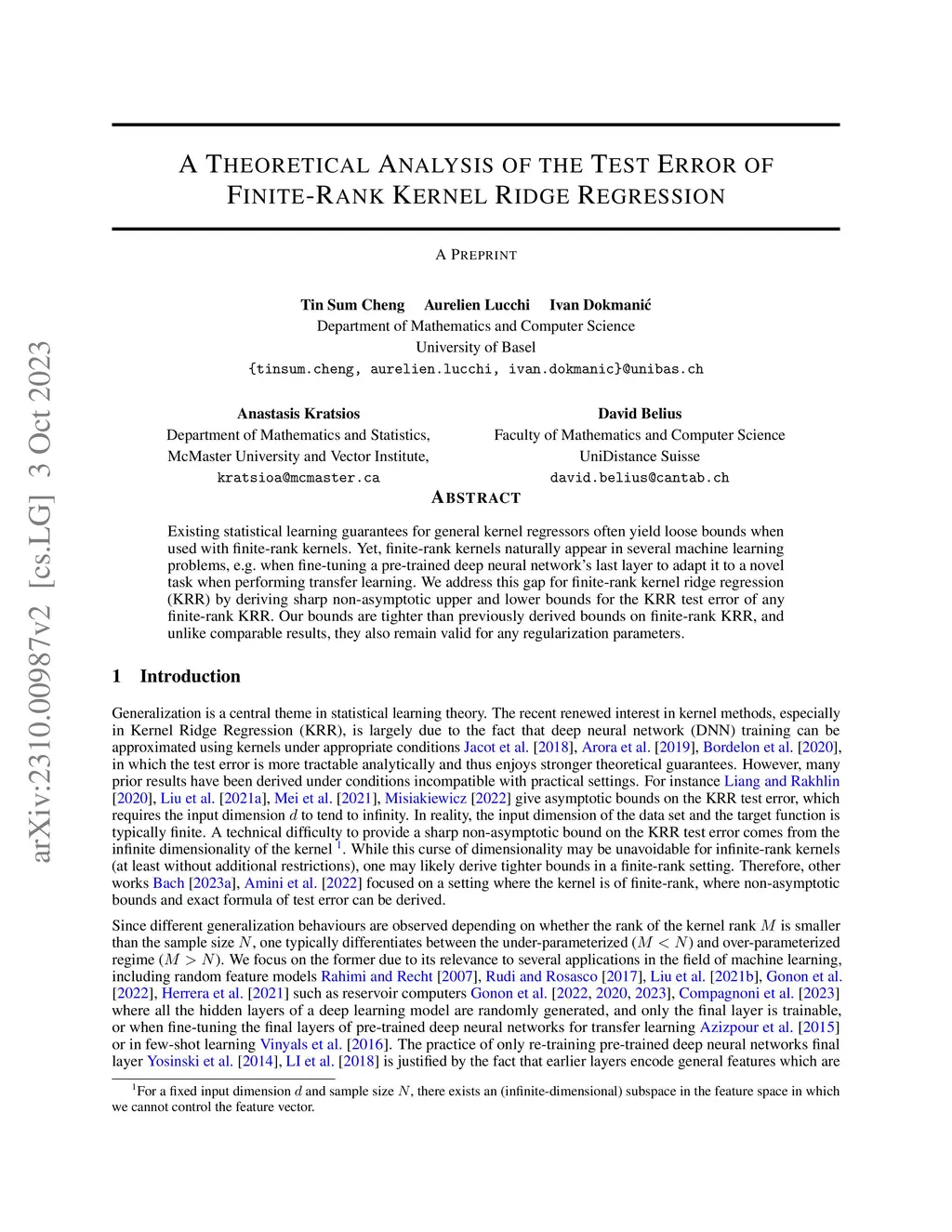 A Theoretical Analysis of the Test Error of Finite-Rank Kernel Ridge