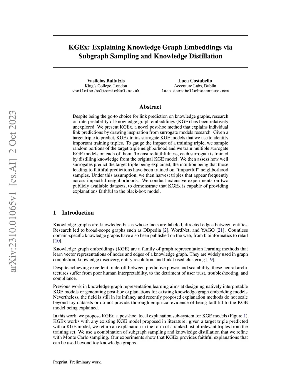 KGEx: Explaining Knowledge Graph Embeddings via Subgraph Sampling and