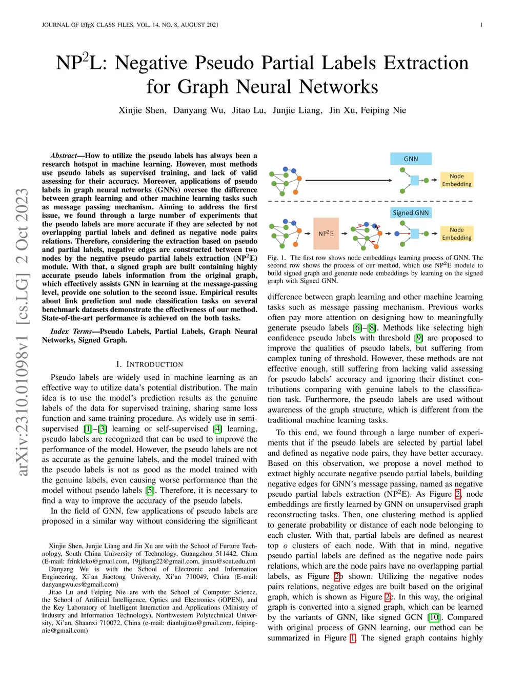 How to utilize the pseudo labels has always been a research hotspot in machine learning. However, most methods use pseudo labels as supervised training, and lack of valid assessing for their accuracy. Moreover, applications of pseudo labels in graph neural networks (GNNs) oversee the difference between graph learning and other machine learning tasks such as message passing mechanism. Aiming to address the first issue, we found through a large number of experiments that the pseudo labels are more accurate if they are selected by not overlapping partial labels and defined as negative node pairs relations. Therefore, considering the extraction based on pseudo and partial labels, negative edges are constructed between two nodes by the negative pseudo partial labels extraction (NPE) module. With that, a signed graph are built containing highly accurate pseudo labels information from the original graph, which effectively assists GNN in learning at the message-passing level, provide one solution to the second issue. Empirical results about link prediction and node classification tasks on several benchmark datasets demonstrate the effectiveness of our method. State-of-the-art performance is achieved on the both tasks.