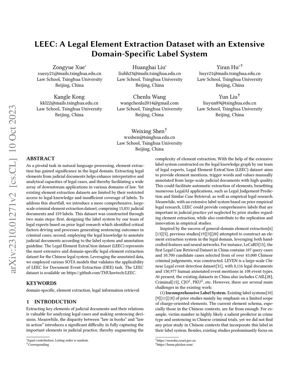 LEEC: A Legal Element Extraction Dataset with an Extensive