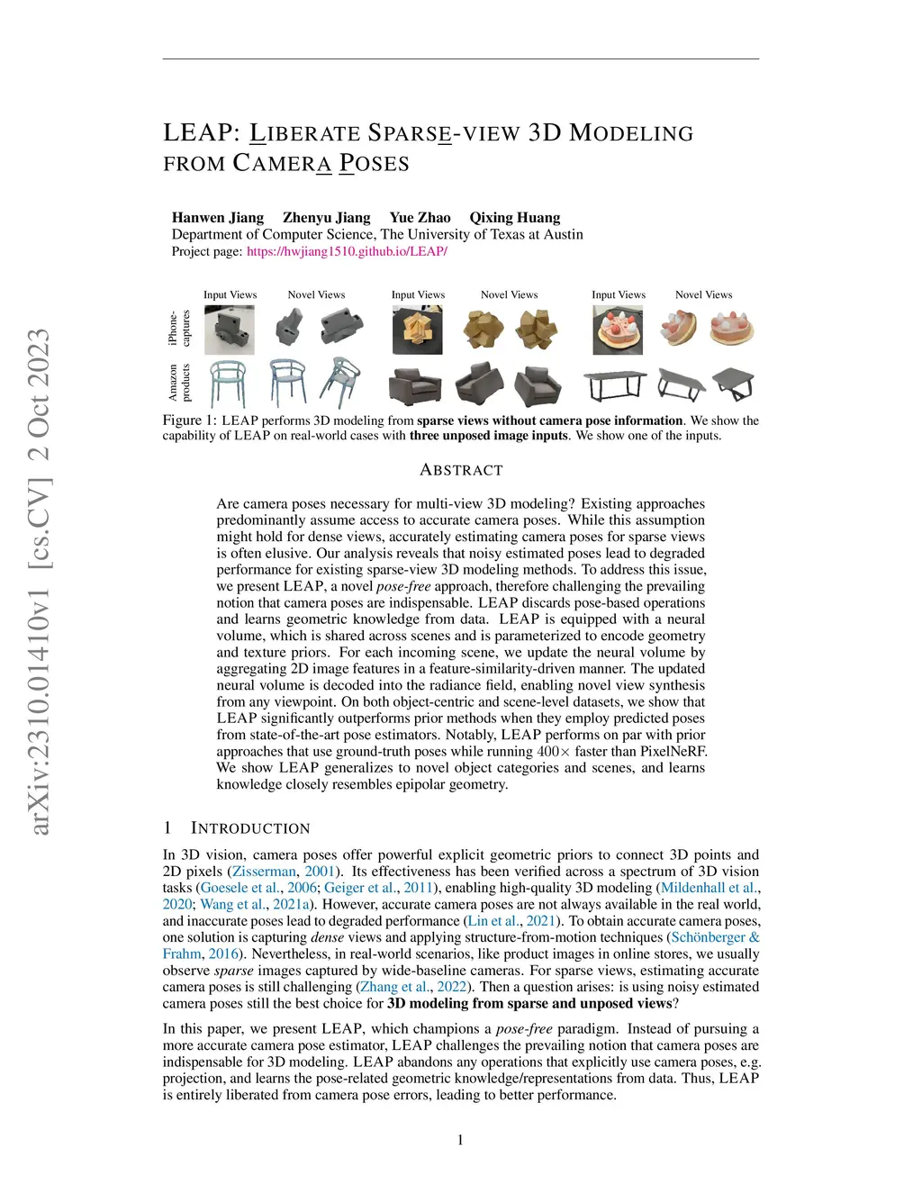 LEAP: Liberate Sparse-view 3D Modeling from Camera Poses