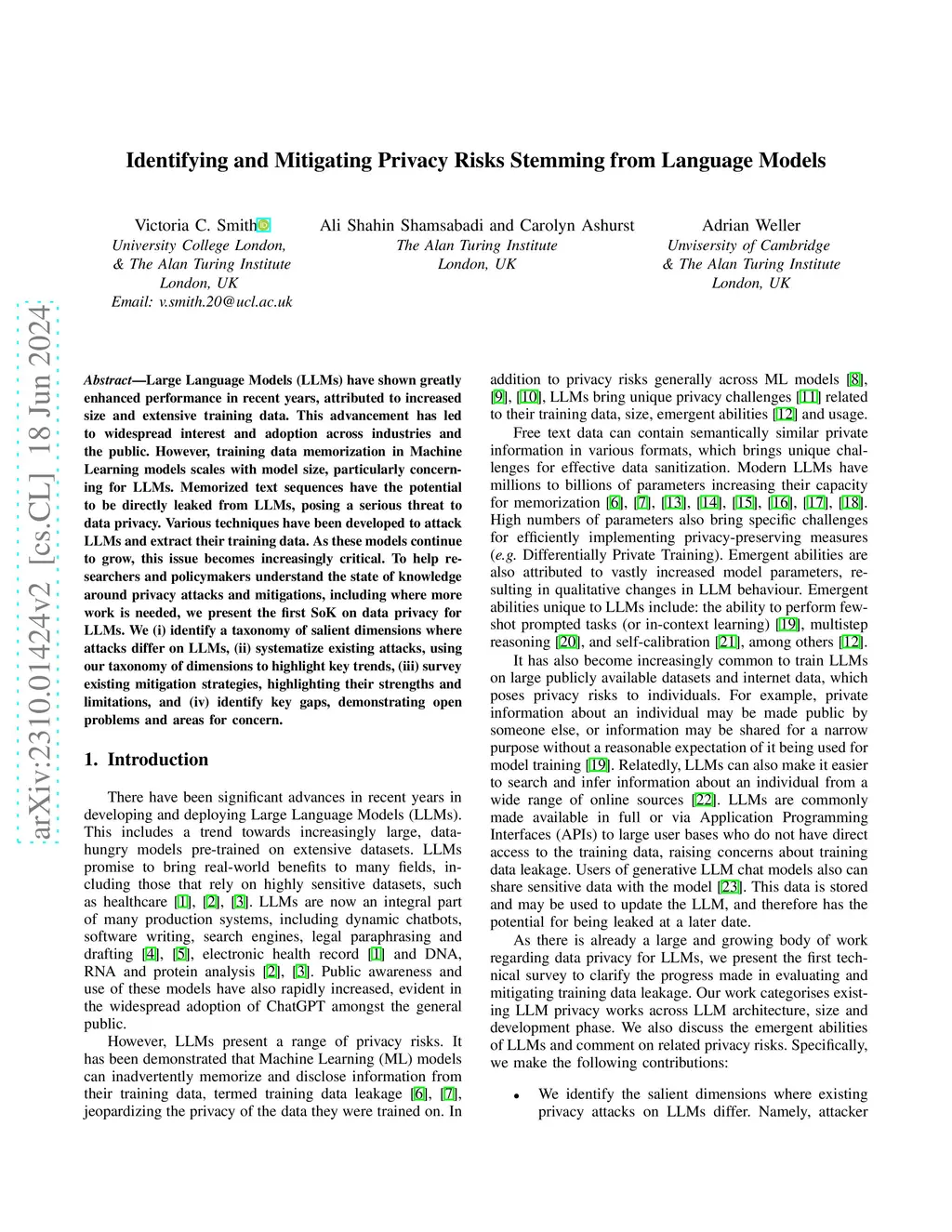 Identifying and Mitigating Privacy Risks Stemming from Language Models: