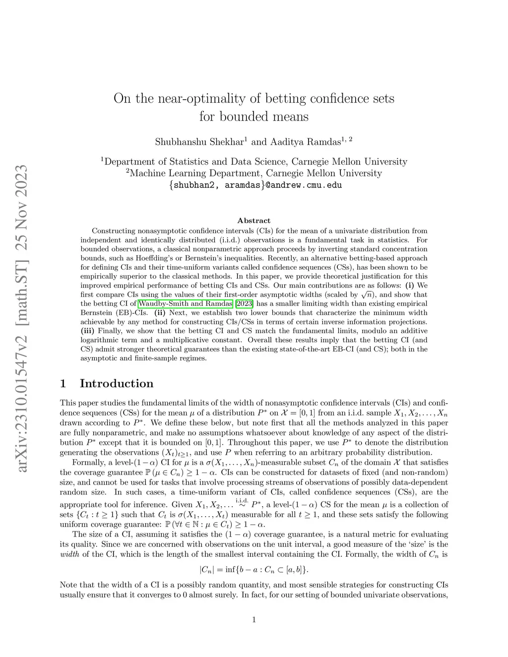 Constructing nonasymptotic confidence intervals (CIs) for the mean of a univariate distribution from independent and identically distributed (i.i.d.) observations is a fundamental task in statistics. For bounded observations, a classical nonparametric approach proceeds by inverting standard concentration bounds, such as Hoeffding's or Bernstein's inequalities. Recently, an alternative betting-based approach for defining CIs and their time-uniform variants called confidence sequences (CSs), has been shown to be empirically superior to the classical methods. In this paper, we provide theoretical justification for this improved empirical performance of betting CIs and CSs. Our main contributions are as follows: (i) We first compare CIs using the values of their first-order asymptotic widths (scaled by ), and show that the betting CI of Waudby-Smith and Ramdas (2023) has a smaller limiting width than existing empirical Bernstein (EB)-CIs. (ii) Next, we establish two lower bounds that characterize the minimum width achievable by any method for constructing CIs/CSs in terms of certain inverse information projections. (iii) Finally, we show that the betting CI and CS match the fundamental limits, modulo an additive logarithmic term and a multiplicative constant. Overall these results imply that the betting CI~(and CS) admit stronger theoretical guarantees than the existing state-of-the-art EB-CI~(and CS); both in the asymptotic and finite-sample regimes.