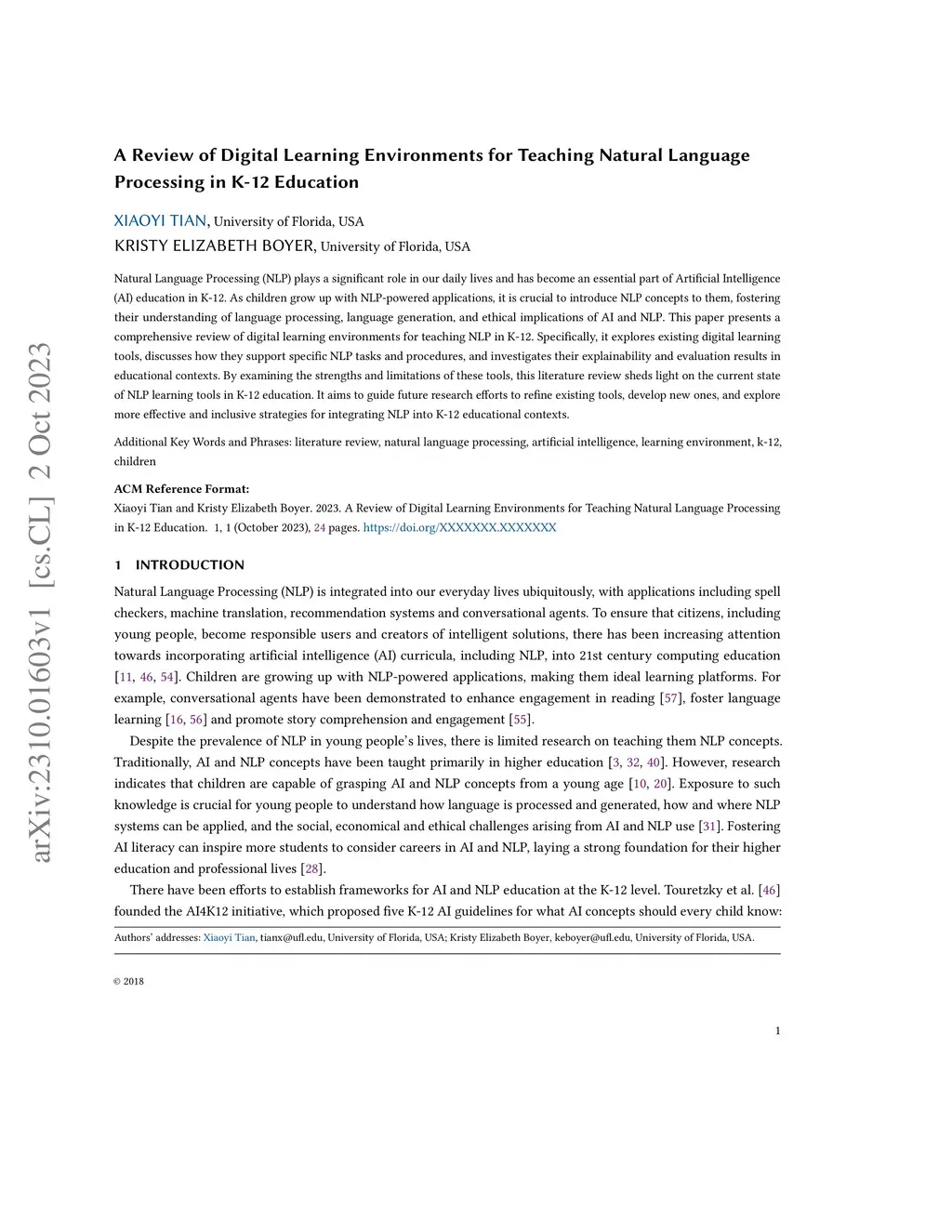 Natural Language Processing (NLP) plays a significant role in our daily lives and has become an essential part of Artificial Intelligence (AI) education in K-12. As children grow up with NLP-powered applications, it is crucial to introduce NLP concepts to them, fostering their understanding of language processing, language generation, and ethical implications of AI and NLP. This paper presents a comprehensive review of digital learning environments for teaching NLP in K-12. Specifically, it explores existing digital learning tools, discusses how they support specific NLP tasks and procedures, and investigates their explainability and evaluation results in educational contexts. By examining the strengths and limitations of these tools, this literature review sheds light on the current state of NLP learning tools in K-12 education. It aims to guide future research efforts to refine existing tools, develop new ones, and explore more effective and inclusive strategies for integrating NLP into K-12 educational contexts.