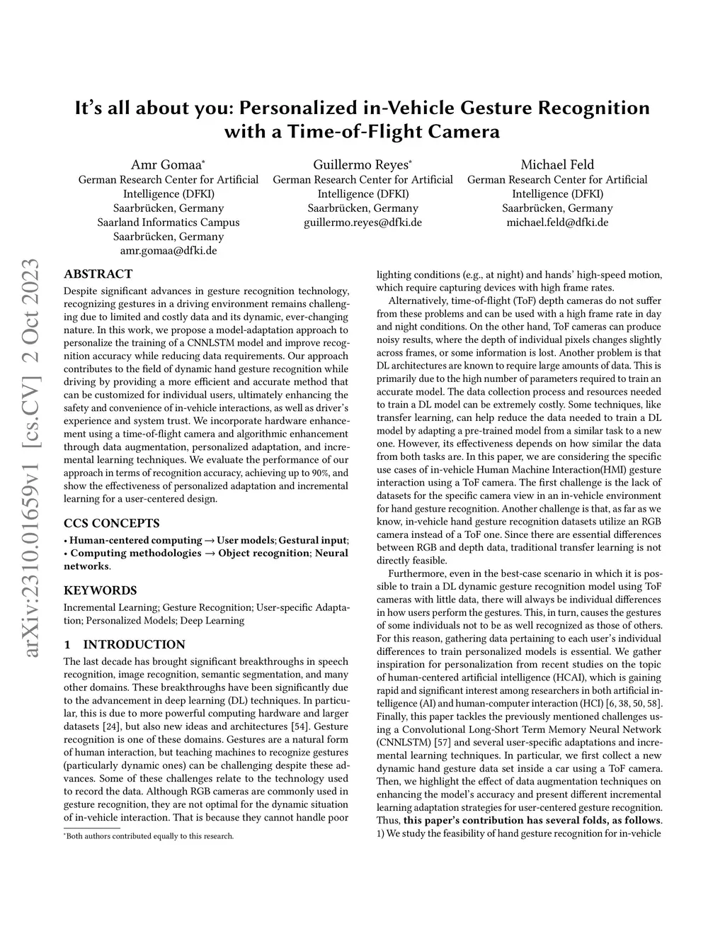 Despite significant advances in gesture recognition technology, recognizing gestures in a driving environment remains challenging due to limited and costly data and its dynamic, ever-changing nature. In this work, we propose a model-adaptation approach to personalize the training of a CNNLSTM model and improve recognition accuracy while reducing data requirements. Our approach contributes to the field of dynamic hand gesture recognition while driving by providing a more efficient and accurate method that can be customized for individual users, ultimately enhancing the safety and convenience of in-vehicle interactions, as well as driver's experience and system trust. We incorporate hardware enhancement using a time-of-flight camera and algorithmic enhancement through data augmentation, personalized adaptation, and incremental learning techniques. We evaluate the performance of our approach in terms of recognition accuracy, achieving up to 90\%, and show the effectiveness of personalized adaptation and incremental learning for a user-centered design.