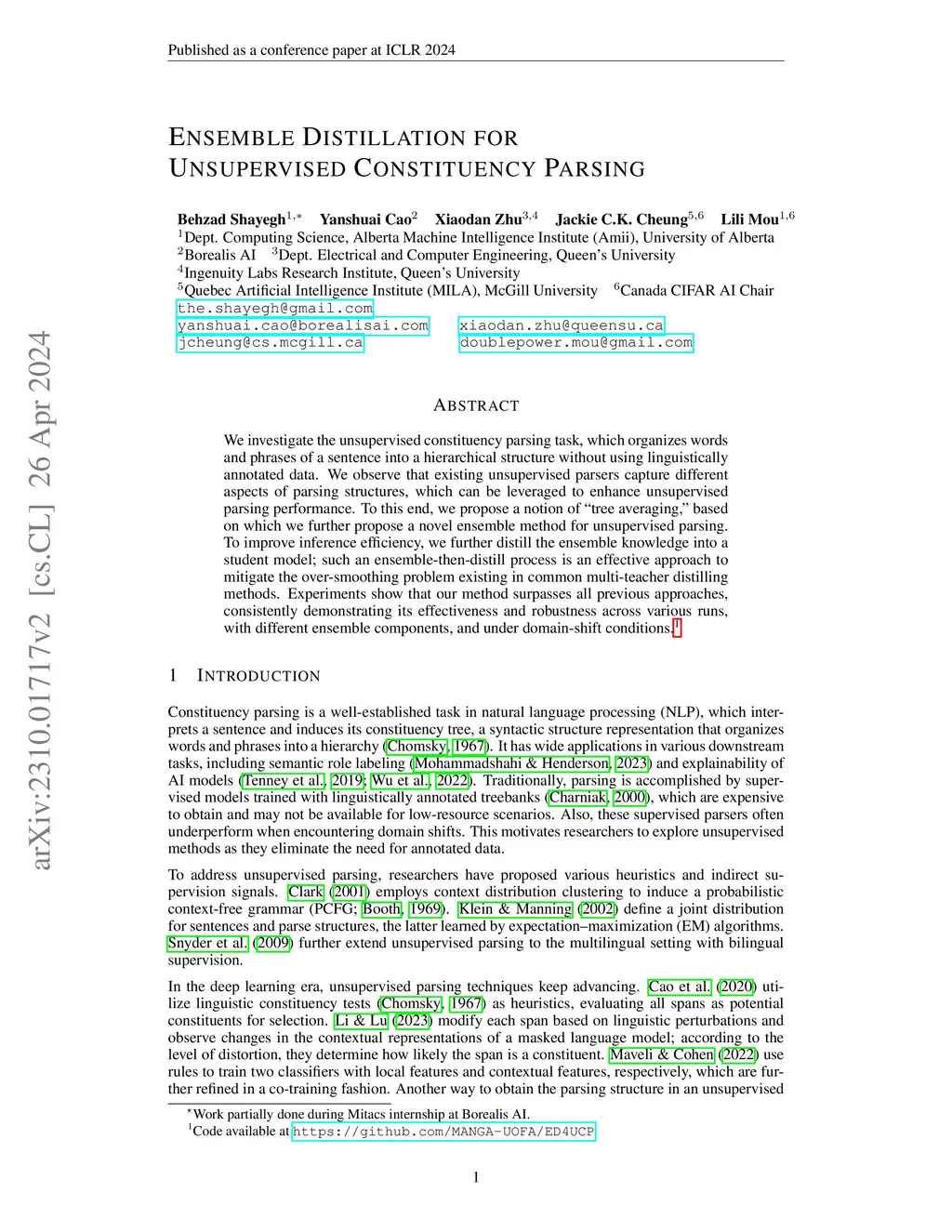 Ensemble Distillation for Unsupervised Constituency Parsing