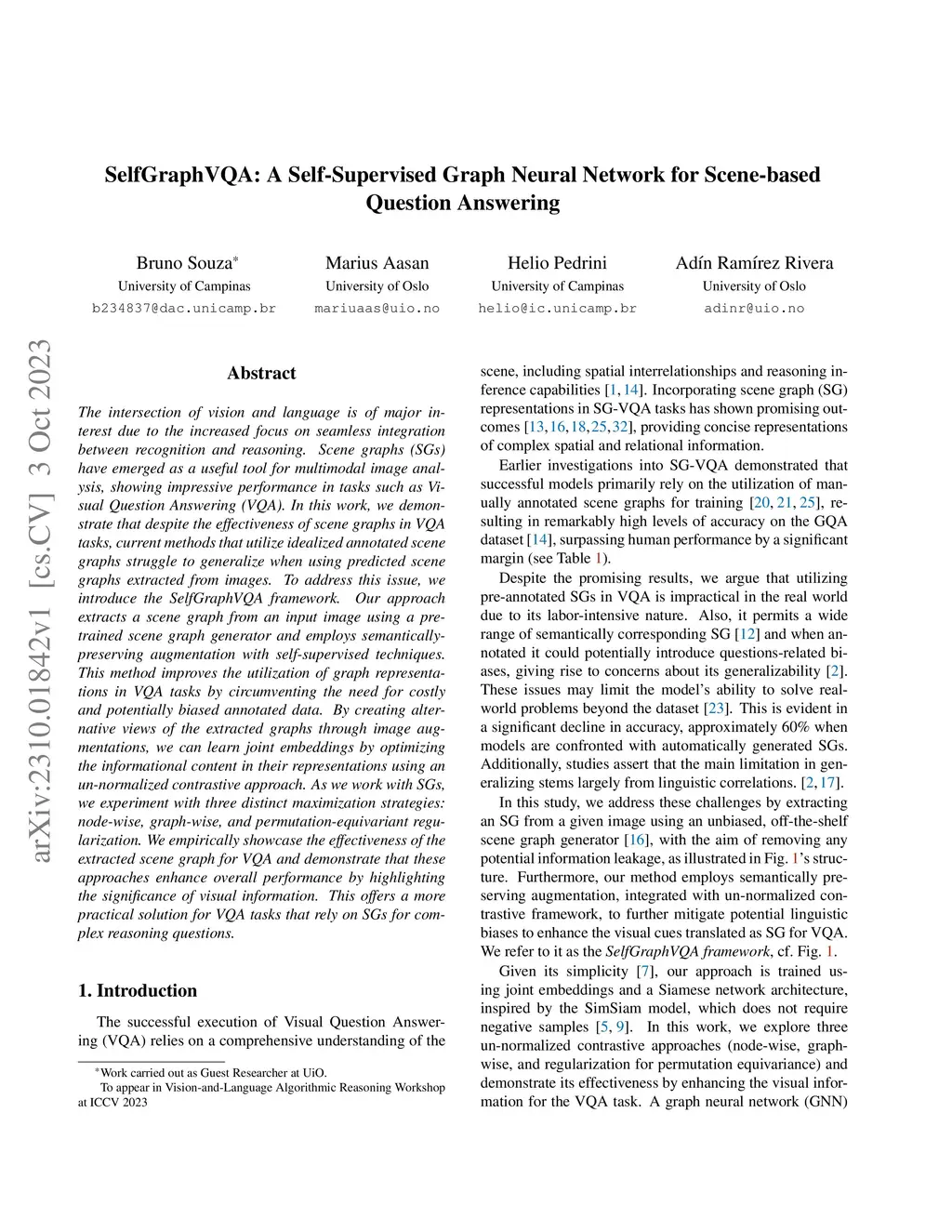 SelfGraphVQA: A Self-Supervised Graph Neural Network for Scene-based