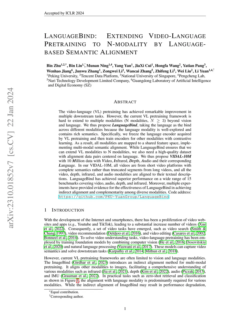 LanguageBind: Extending Video-Language Pretraining to N-modality by