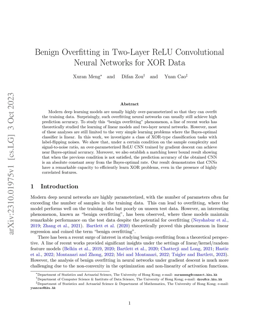 Modern deep learning models are usually highly over-parameterized so that they can overfit the training data. Surprisingly, such overfitting neural networks can usually still achieve high prediction accuracy. To study this "benign overfitting" phenomenon, a line of recent works has theoretically studied the learning of linear models and two-layer neural networks. However, most of these analyses are still limited to the very simple learning problems where the Bayes-optimal classifier is linear. In this work, we investigate a class of XOR-type classification tasks with label-flipping noises. We show that, under a certain condition on the sample complexity and signal-to-noise ratio, an over-parameterized ReLU CNN trained by gradient descent can achieve near Bayes-optimal accuracy. Moreover, we also establish a matching lower bound result showing that when the previous condition is not satisfied, the prediction accuracy of the obtained CNN is an absolute constant away from the Bayes-optimal rate. Our result demonstrates that CNNs have a remarkable capacity to efficiently learn XOR problems, even in the presence of highly correlated features.