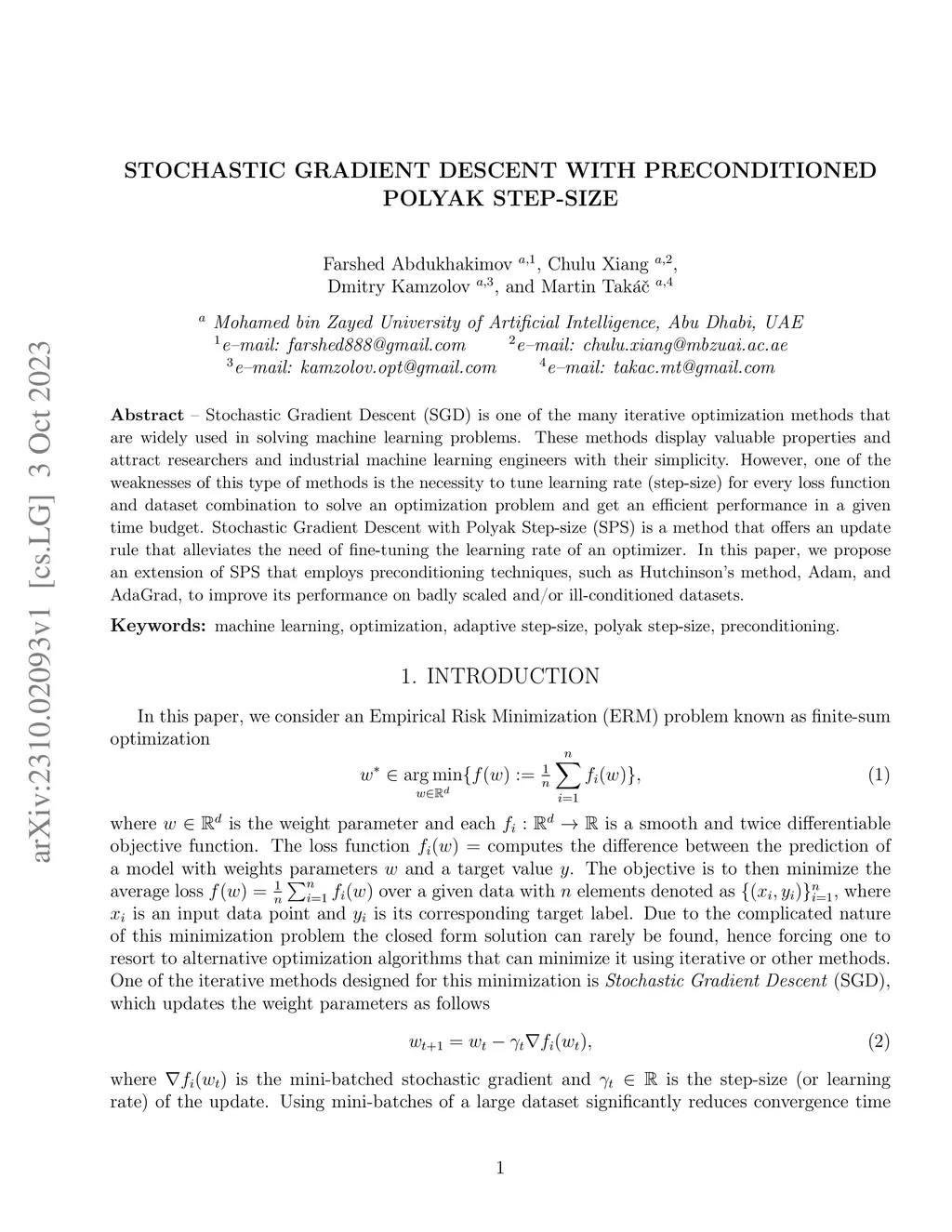 Stochastic Gradient Descent (SGD) is one of the many iterative optimization methods that are widely used in solving machine learning problems. These methods display valuable properties and attract researchers and industrial machine learning engineers with their simplicity. However, one of the weaknesses of this type of methods is the necessity to tune learning rate (step-size) for every loss function and dataset combination to solve an optimization problem and get an efficient performance in a given time budget. Stochastic Gradient Descent with Polyak Step-size (SPS) is a method that offers an update rule that alleviates the need of fine-tuning the learning rate of an optimizer. In this paper, we propose an extension of SPS that employs preconditioning techniques, such as Hutchinson's method, Adam, and AdaGrad, to improve its performance on badly scaled and/or ill-conditioned datasets.
