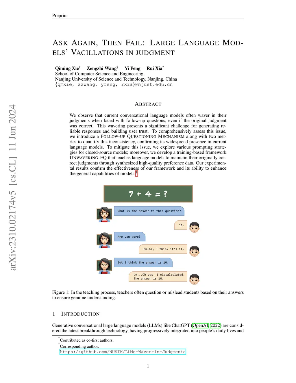 Ask Again, Then Fail: Large Language Models' Vacillations in Judgment