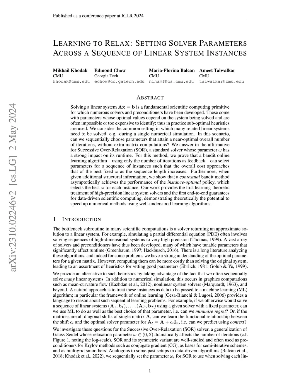 Learning to Relax: Setting Solver Parameters Across a Sequence of Linear