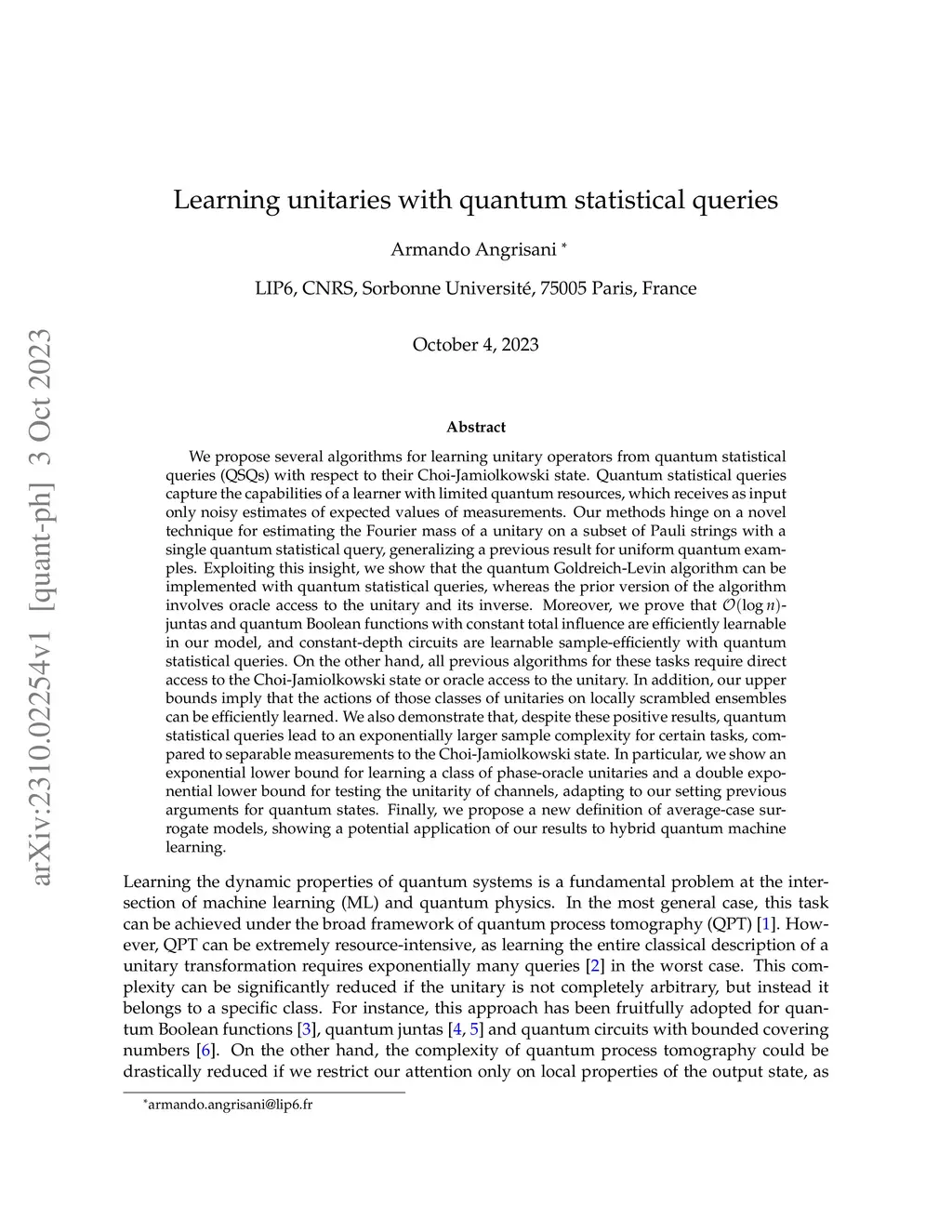 We propose several algorithms for learning unitary operators from quantum statistical queries with respect to their Choi-Jamiolkowski state. Quantum statistical queries capture the capabilities of a learner with limited quantum resources, which receives as input only noisy estimates of expected values of measurements. Our approach leverages quantum statistical queries to estimate the Fourier mass of a unitary on a subset of Pauli strings, generalizing previous techniques developed for uniform quantum examples. Specifically, we show that the celebrated quantum Goldreich-Levin algorithm can be implemented with quantum statistical queries, whereas the prior version of the algorithm involves oracle access to the unitary and its inverse. As an application, we prove that quantum Boolean functions with constant total influence or with constant degree are efficiently learnable in our model. Moreover, we prove that -juntas are efficiently learnable and constant-depth circuits are learnable query-efficiently with quantum statistical queries. On the other hand, all previous algorithms for these tasks demand significantly greater resources, such as oracle access to the unitary or direct access to the Choi-Jamiolkowski state. We also demonstrate that, despite these positive results, quantum statistical queries lead to an exponentially larger query complexity for certain tasks, compared to separable measurements to the Choi-Jamiolkowski state. In particular, we show an exponential lower bound for learning a class of phase-oracle unitaries and a double exponential lower bound for testing the unitarity of channels. Taken together, our results indicate that quantum statistical queries offer a unified framework for various unitary learning tasks, with potential applications in quantum machine learning, many-body physics and benchmarking of near-term devices.