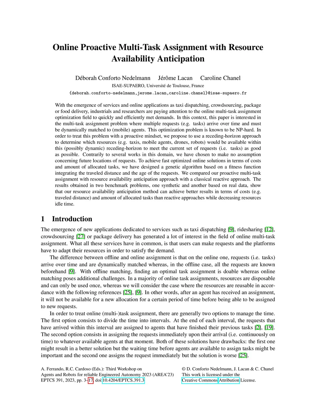 With the emergence of services and online applications as taxi dispatching, crowdsourcing, package or food delivery, industrials and researchers are paying attention to the online multi-task assignment optimization field to quickly and efficiently met demands. In this context, this paper is interested in the multi-task assignment problem where multiple requests (e.g. tasks) arrive over time and must be dynamically matched to (mobile) agents. This optimization problem is known to be NP-hard. In order to treat this problem with a proactive mindset, we propose to use a receding-horizon approach to determine which resources (e.g. taxis, mobile agents, drones, robots) would be available within this (possibly dynamic) receding-horizon to meet the current set of requests (i.e. tasks) as good as possible. Contrarily to several works in this domain, we have chosen to make no assumption concerning future locations of requests. To achieve fast optimized online solutions in terms of costs and amount of allocated tasks, we have designed a genetic algorithm based on a fitness function integrating the traveled distance and the age of the requests. We compared our proactive multi-task assignment with resource availability anticipation approach with a classical reactive approach. The results obtained in two benchmark problems, one synthetic and another based on real data, show that our resource availability anticipation method can achieve better results in terms of costs (e.g. traveled distance) and amount of allocated tasks than reactive approaches while decreasing resources idle time.