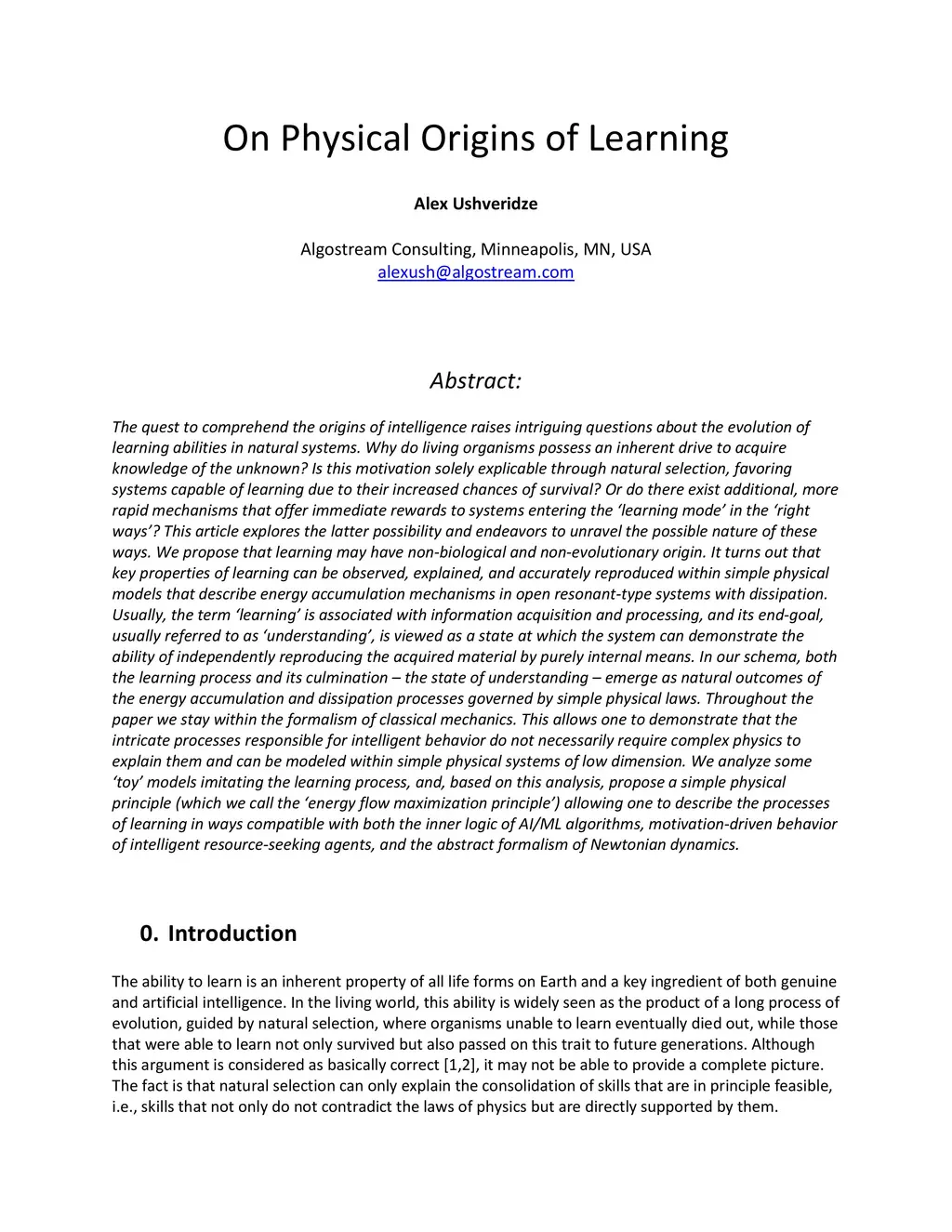 The quest to comprehend the origins of intelligence raises intriguing questions about the evolution of learning abilities in natural systems. Why do living organisms possess an inherent drive to acquire knowledge of the unknown? Is this motivation solely explicable through natural selection, favoring systems capable of learning due to their increased chances of survival? Or do there exist additional, more rapid mechanisms that offer immediate rewards to systems entering the "learning mode" in the "right ways"? This article explores the latter possibility and endeavors to unravel the possible nature of these ways. We propose that learning may have non-biological and non-evolutionary origin. It turns out that key properties of learning can be observed, explained, and accurately reproduced within simple physical models that describe energy accumulation mechanisms in open resonant-type systems with dissipation.