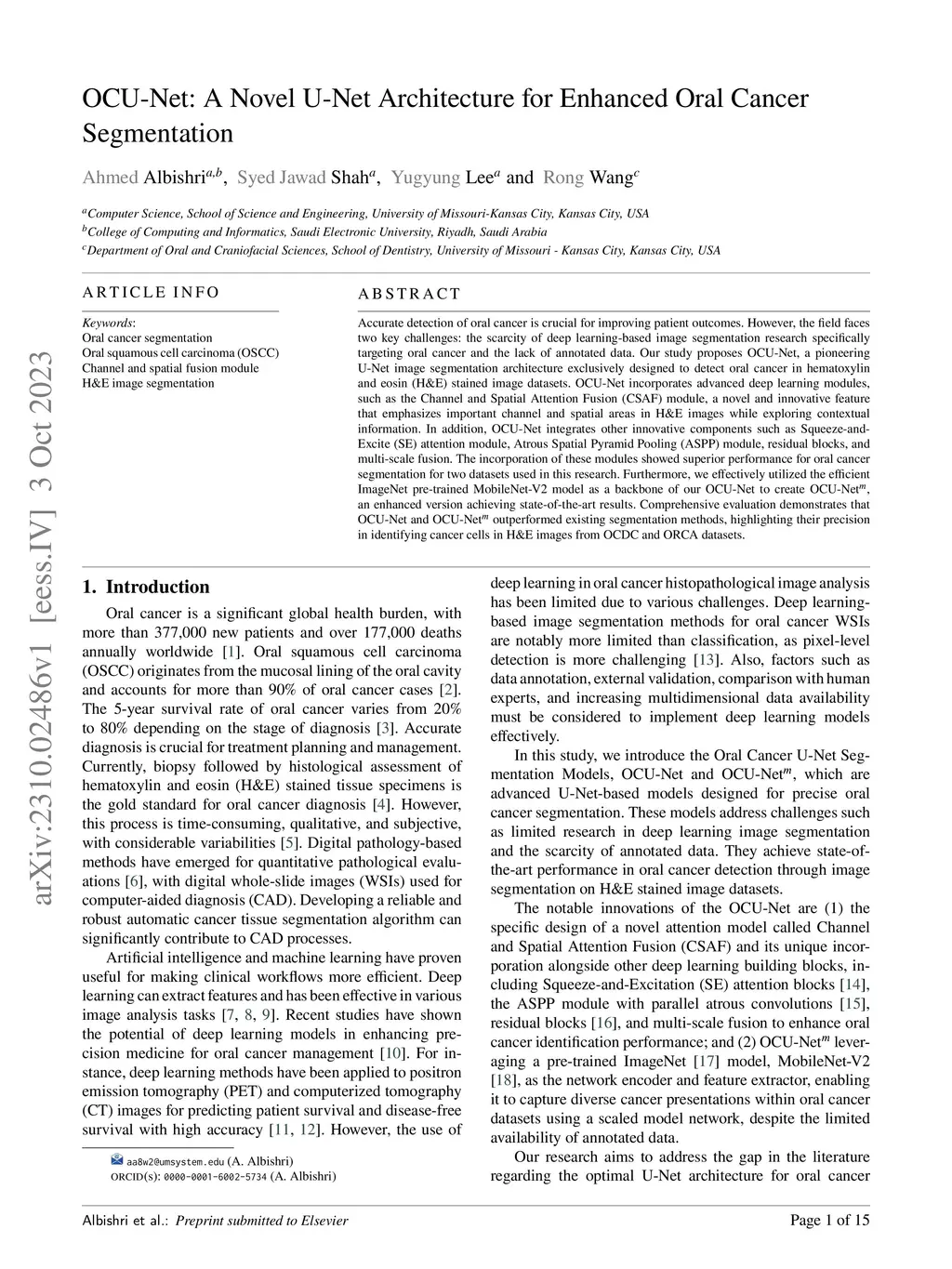 OCU-Net: A Novel U-Net Architecture for Enhanced Oral Cancer