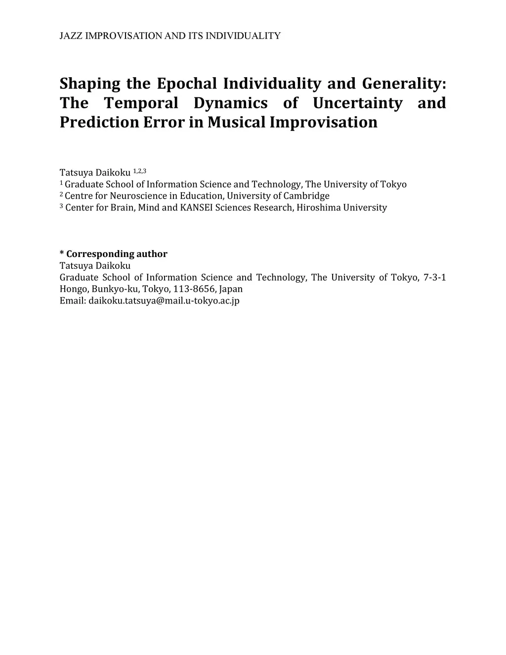 of Uncertainty and Prediction Error in Musical Improvisation