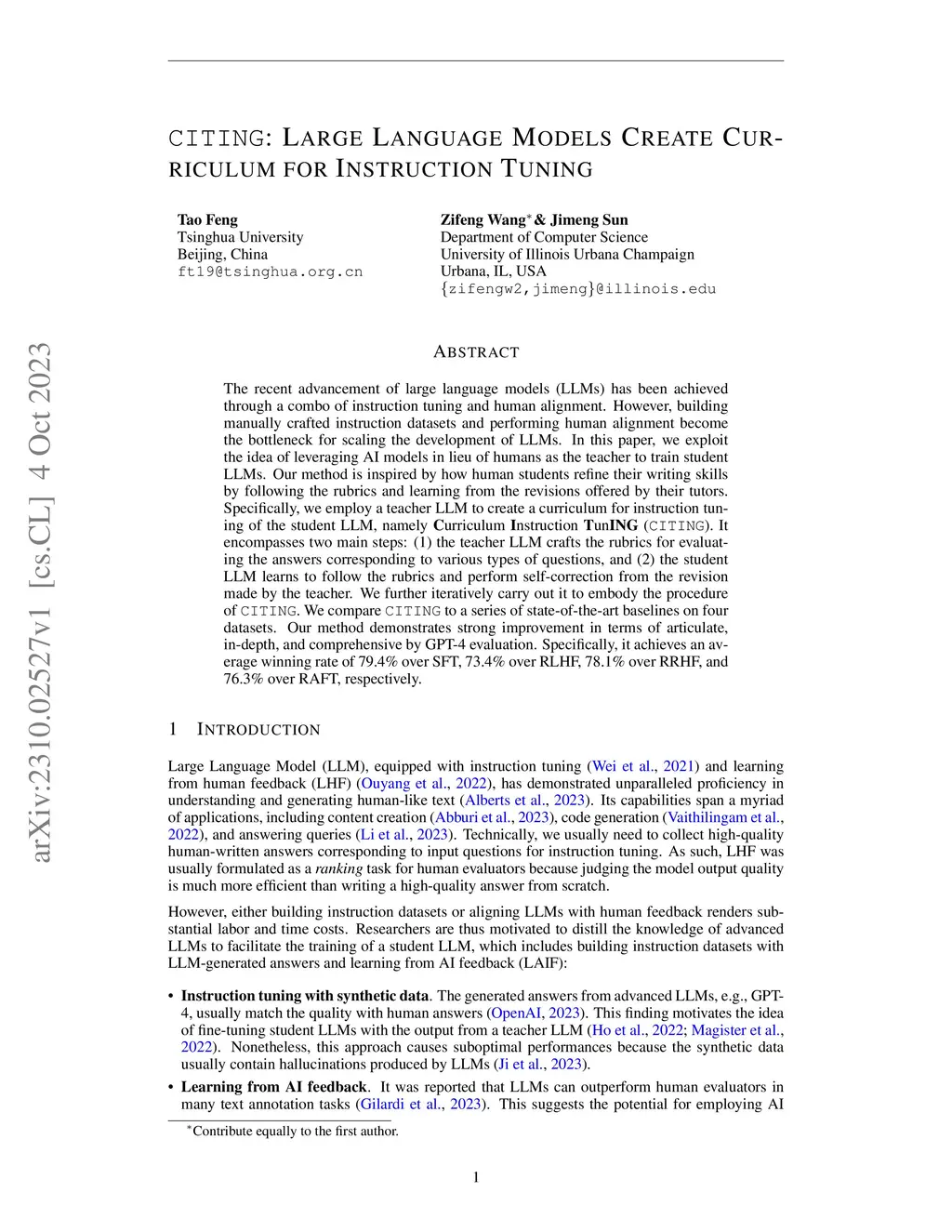 CITING: Large Language Models Create Curriculum for Instruction Tuning