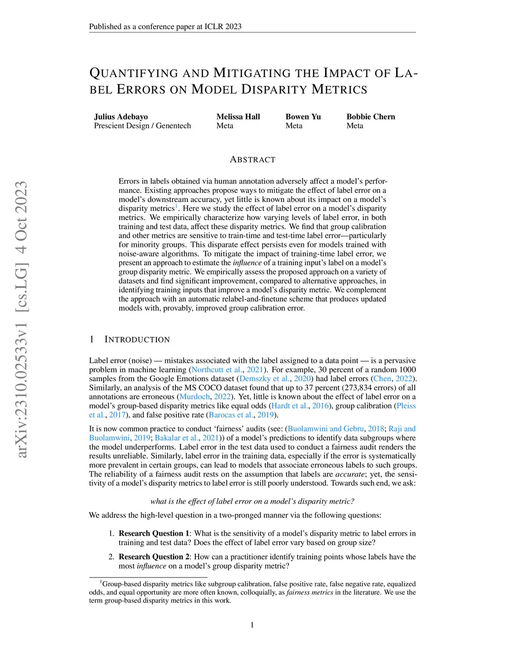 Quantifying and mitigating the impact of label errors on model disparity