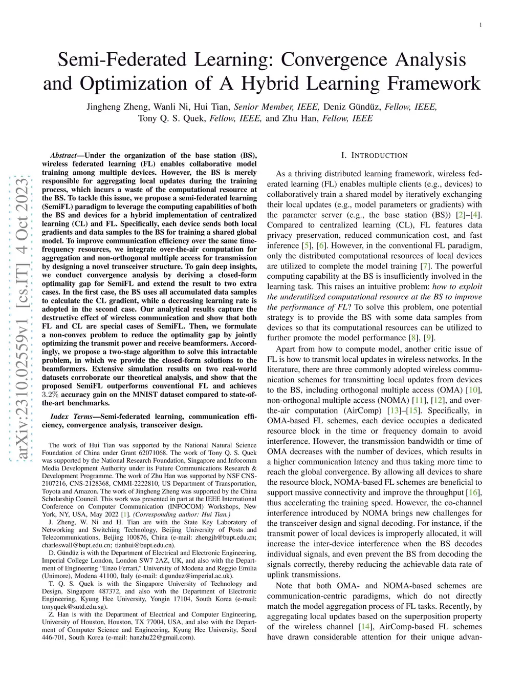 Semi-Federated Learning: Convergence Analysis and Optimization of A