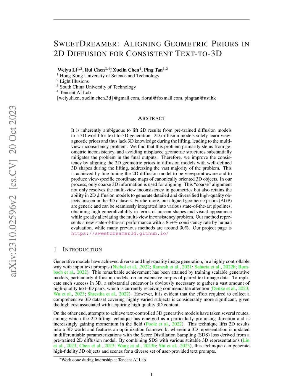 SweetDreamer: Aligning Geometric Priors in 2D Diffusion for Consistent