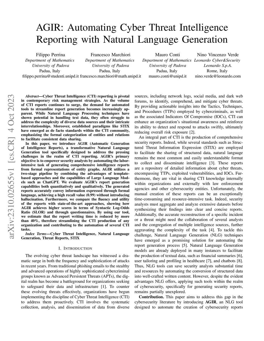 AGIR: Automating Cyber Threat Intelligence Reporting with Natural