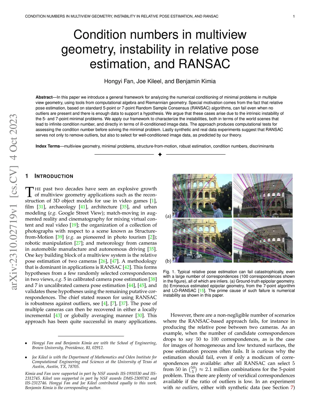 Condition numbers in multiview geometry, instability in relative pose estimation, and RANSAC